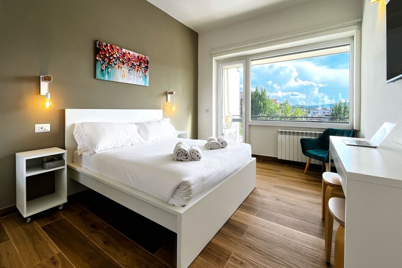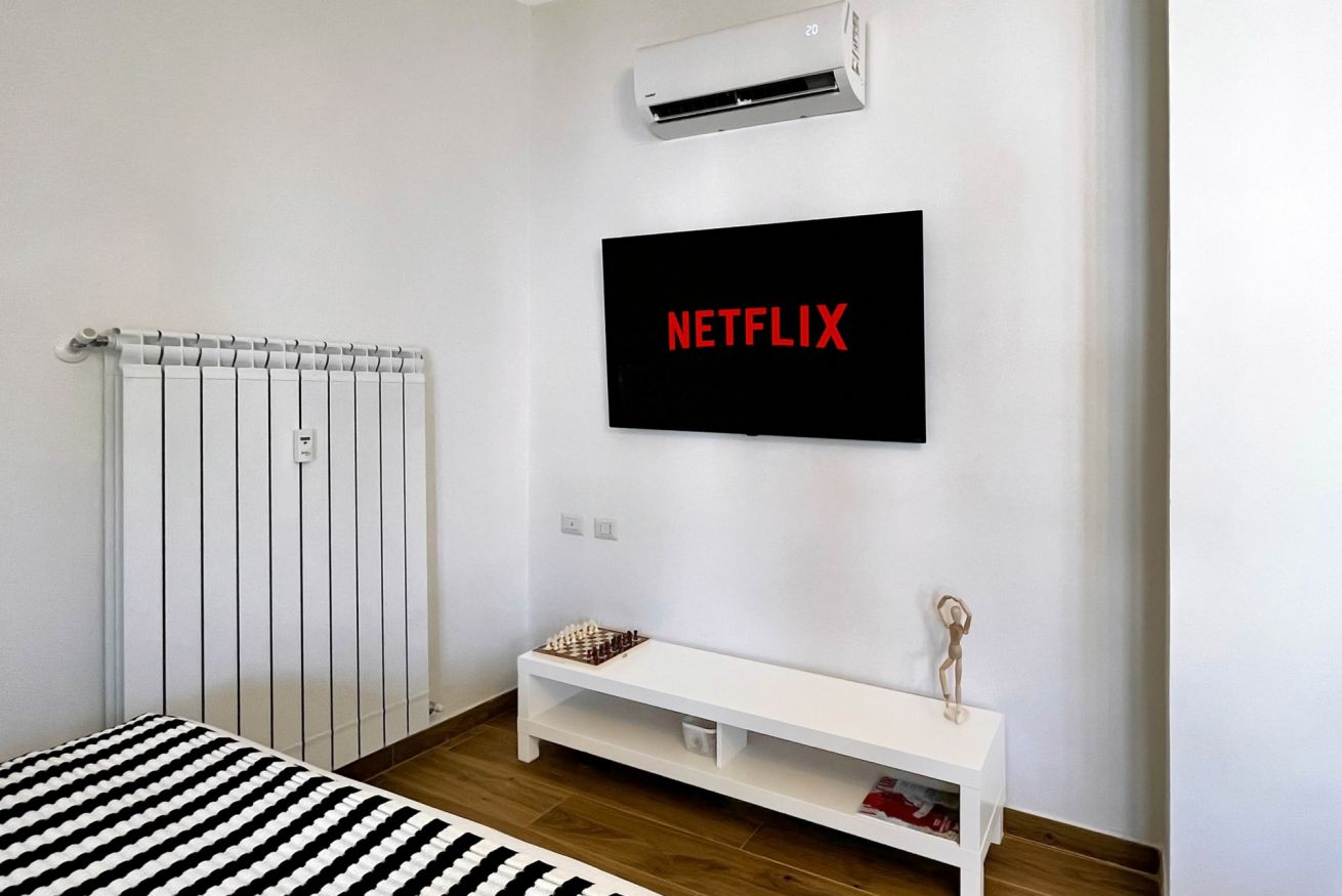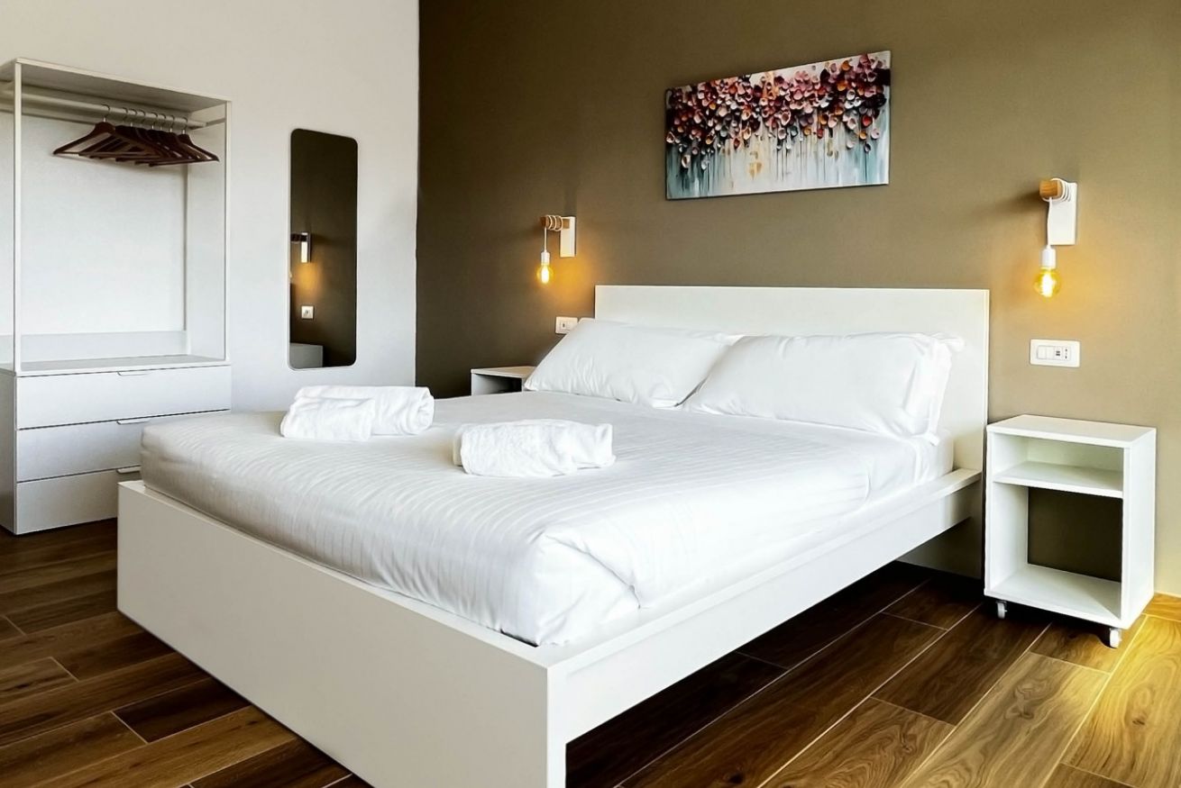 • Camera da letto: ampia camera matrimoniale con scrivania, Smart TV e accesso diretto alla terrazza privata.