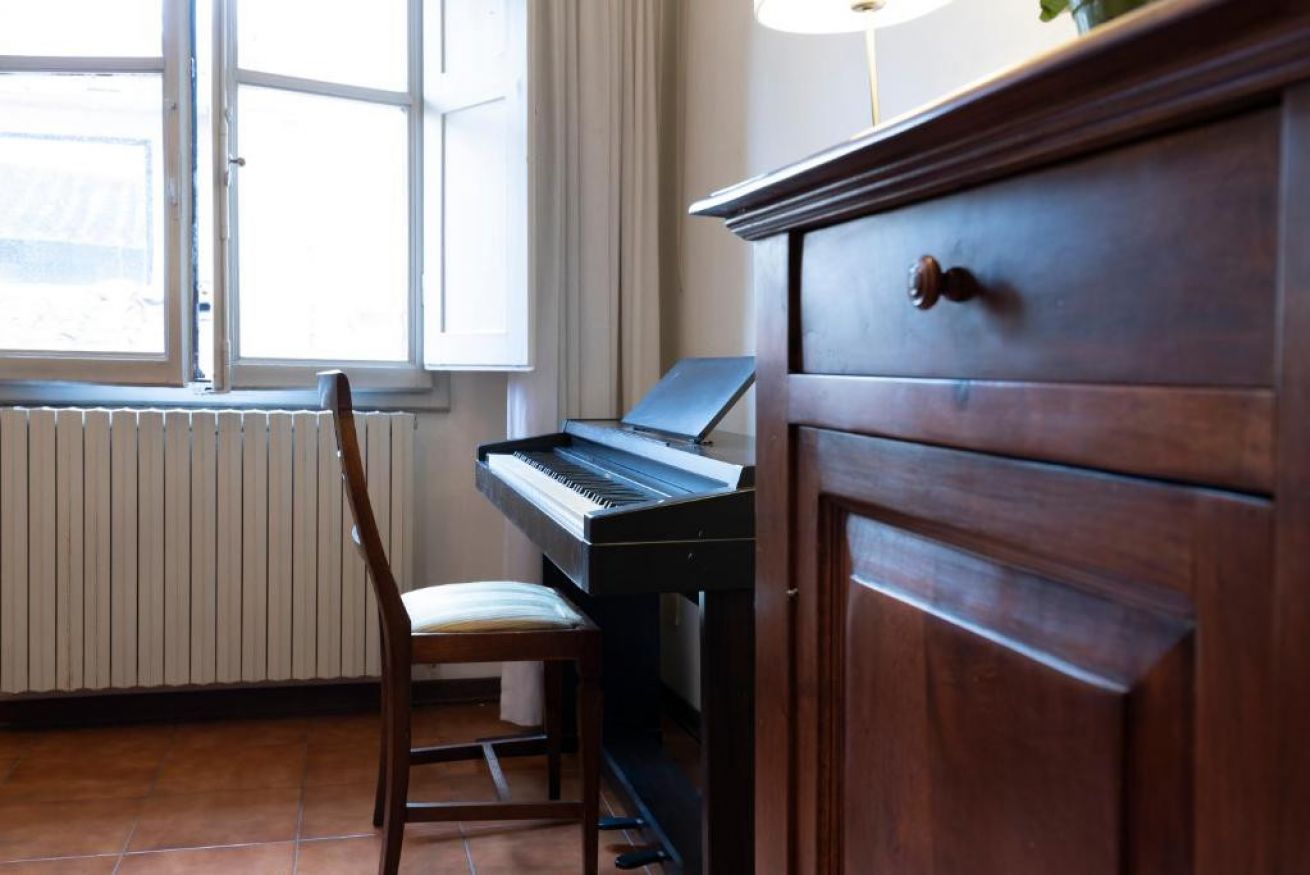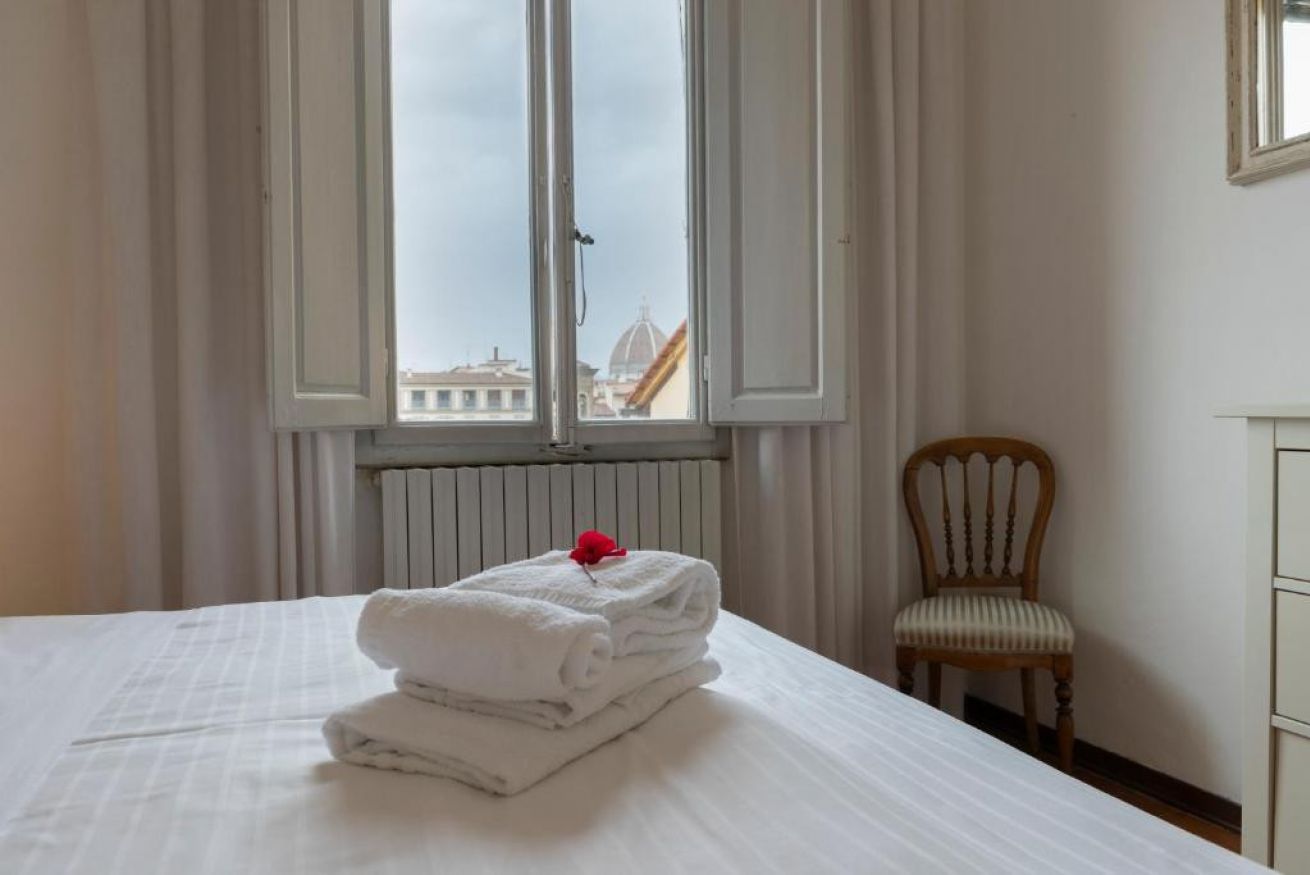 L’appartamento, di 80 metri quadrati, presenta un design caldo e classico ed è inondato di luce naturale grazie alla sua posizione all’ultimo piano. Può ospitare comodamente fino a quattro persone. La camera da letto dispone di un letto matrimoniale queen-size, aria condizionata e una vista incantevole da cui si intravede la cupola del Duomo. Il soggiorno è spazioso, con un comodo divano letto matrimoniale, TV, tavolo da pranzo e un pianoforte. La cucina è completamente attrezzata con forno, microonde, piano cottura, frigorifero, lavastoviglie, macchina Nespresso e bollitore; da qui si accede a un piccolo ma grazioso balcone con vista sullo skyline fiorentino. Il bagno, luminoso e funzionale, è dotato di doccia, asciugamani puliti e prodotti da toeletta in omaggio.