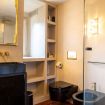 L’appartamento, di circa 100 m², offre ambienti raffinati e ben distribuiti. All’ingresso si trova la zona pranzo con cucina a scomparsa, perfetta per preparare i pasti in modo pratico e discreto. Il soggiorno, arricchito da quadri e comode sedute, è pensato per rilassarsi dopo una giornata in città; da qui una scala conduce a un secondo bagno. La camera da letto è un piccolo rifugio privato con letto matrimoniale queen-size, cabina armadio e bagno en-suite con doccia. Non mancano aria condizionata, riscaldamento, Wi-Fi, lavatrice e lavastoviglie. Pur trovandosi nel cuore pulsante di Firenze, l’appartamento si affaccia su una corte interna silenziosa, garantendo tranquillità e riservatezza.