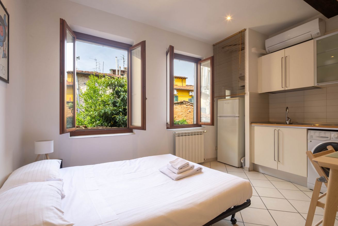 Questo moderno monolocale, appena ristrutturato, si trova al secondo piano di un tipico edificio fiorentino (senza ascensore), proprio di fronte al celebre Mercato Centrale. Luminoso e ben organizzato, l'appartamento offre un accogliente open space che unisce comfort e funzionalità.