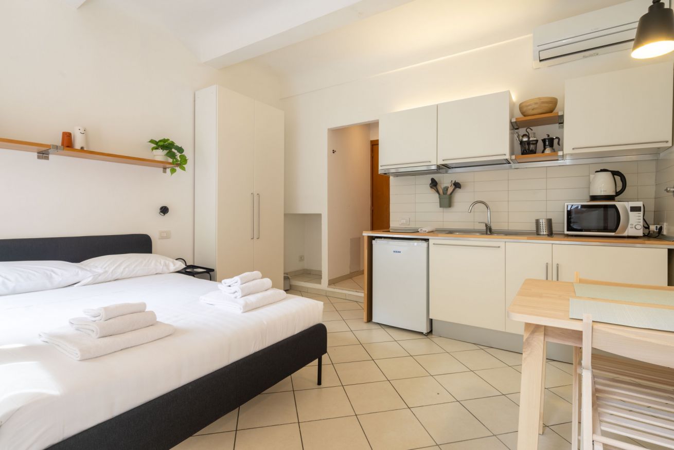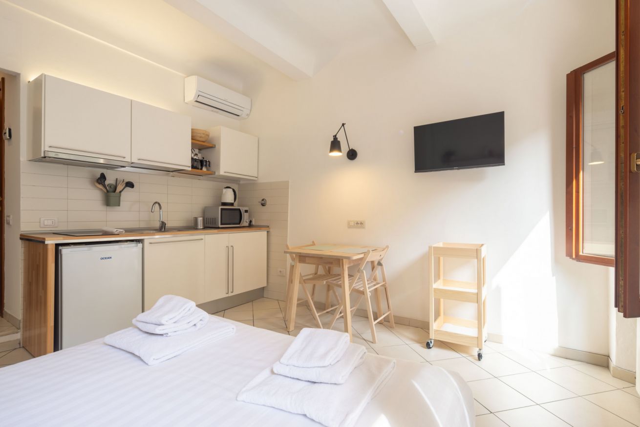 Questo monolocale, appena ristrutturato, si trova al secondo piano (senza ascensore) di un tipico edificio fiorentino, proprio di fronte allo storico Mercato Centrale. Lo spazio è organizzato in un unico ambiente open space, pensato per offrire comfort e funzionalità durante un breve soggiorno a Firenze.