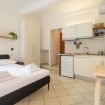 L'appartamento dispone di una cucina compatta ma completa di tutto il necessario, una zona notte con comodo letto matrimoniale e TV, e un bagno privato con doccia. Luminoso e accogliente, è dotato di aria condizionata e Wi-Fi veloce, per un soggiorno pratico e piacevole.