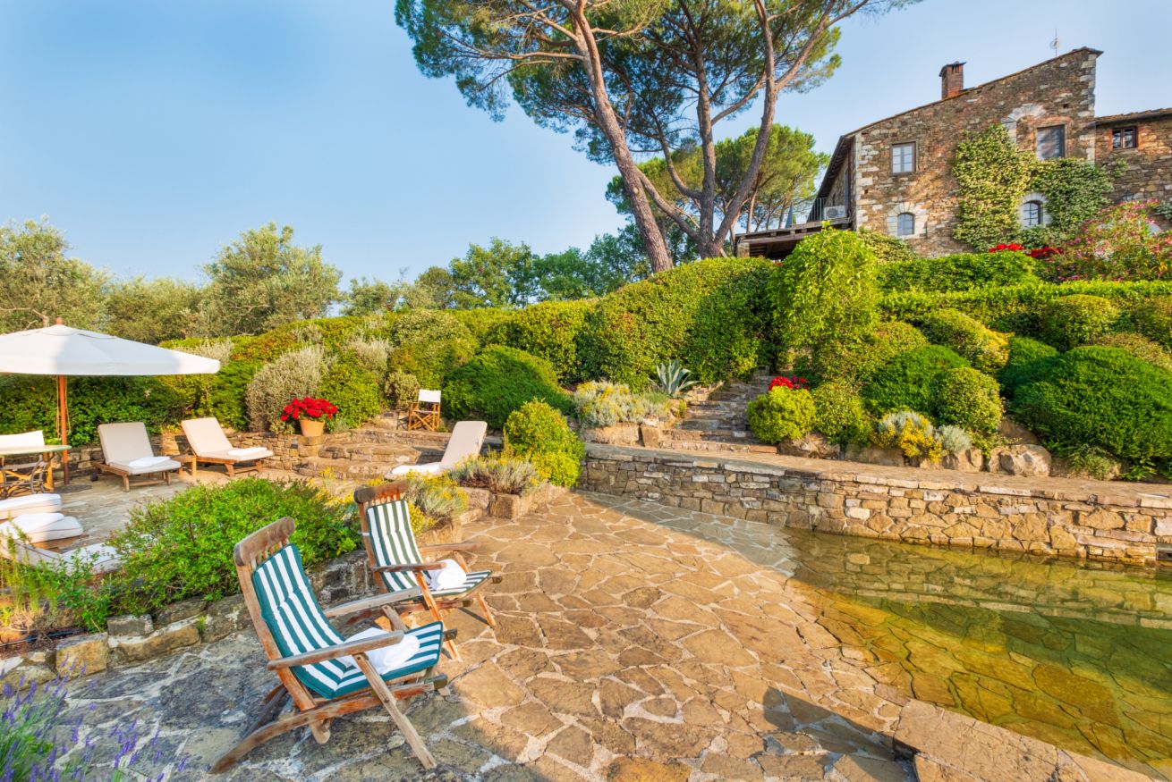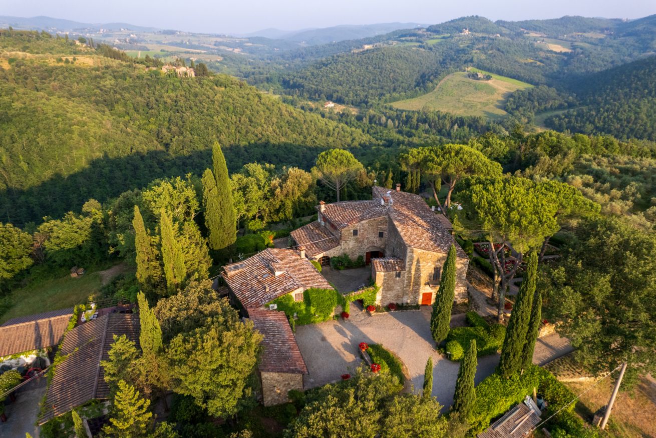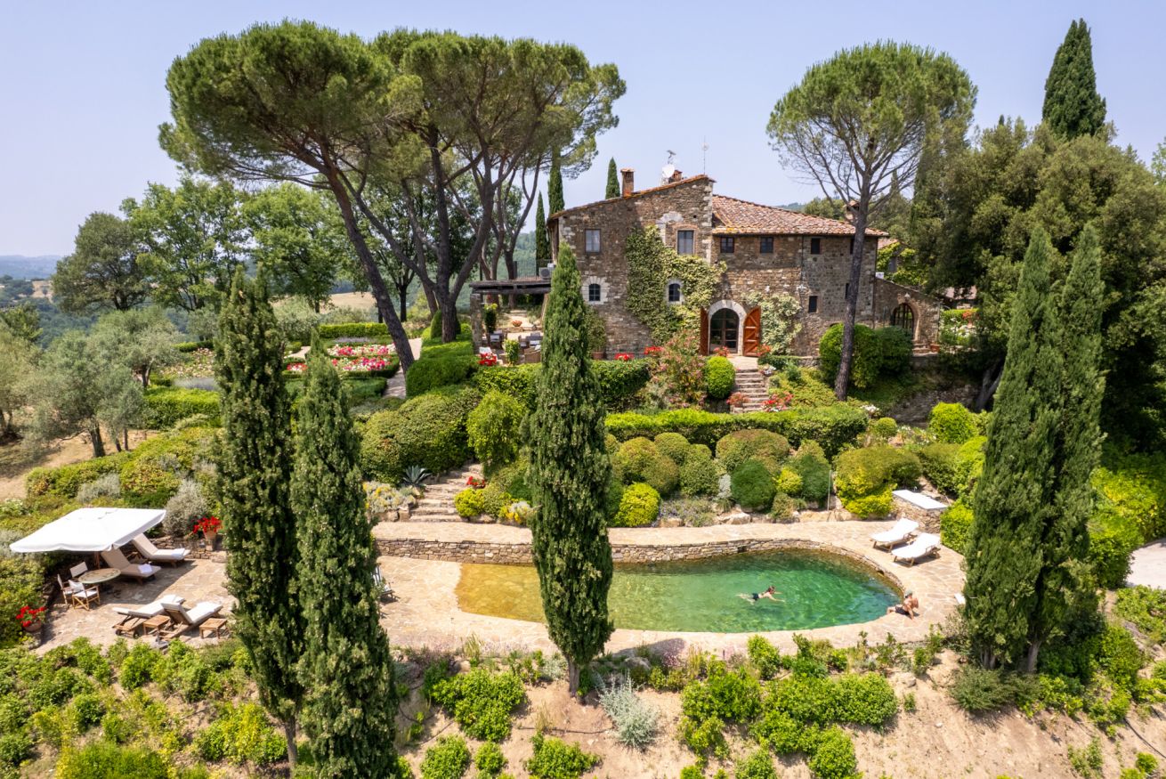 Proprietà esclusiva nel cuore del Chianti, immersa tra vigneti e uliveti con una vista mozzafiato sulla campagna toscana. Un antico casale in pietra con piscina privata e campo da tennis, circondato da ampi e curatissimi spazi verdi.