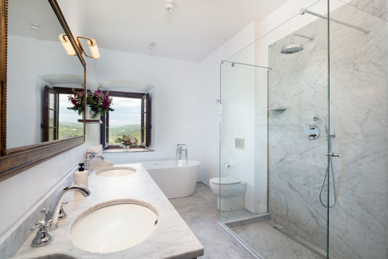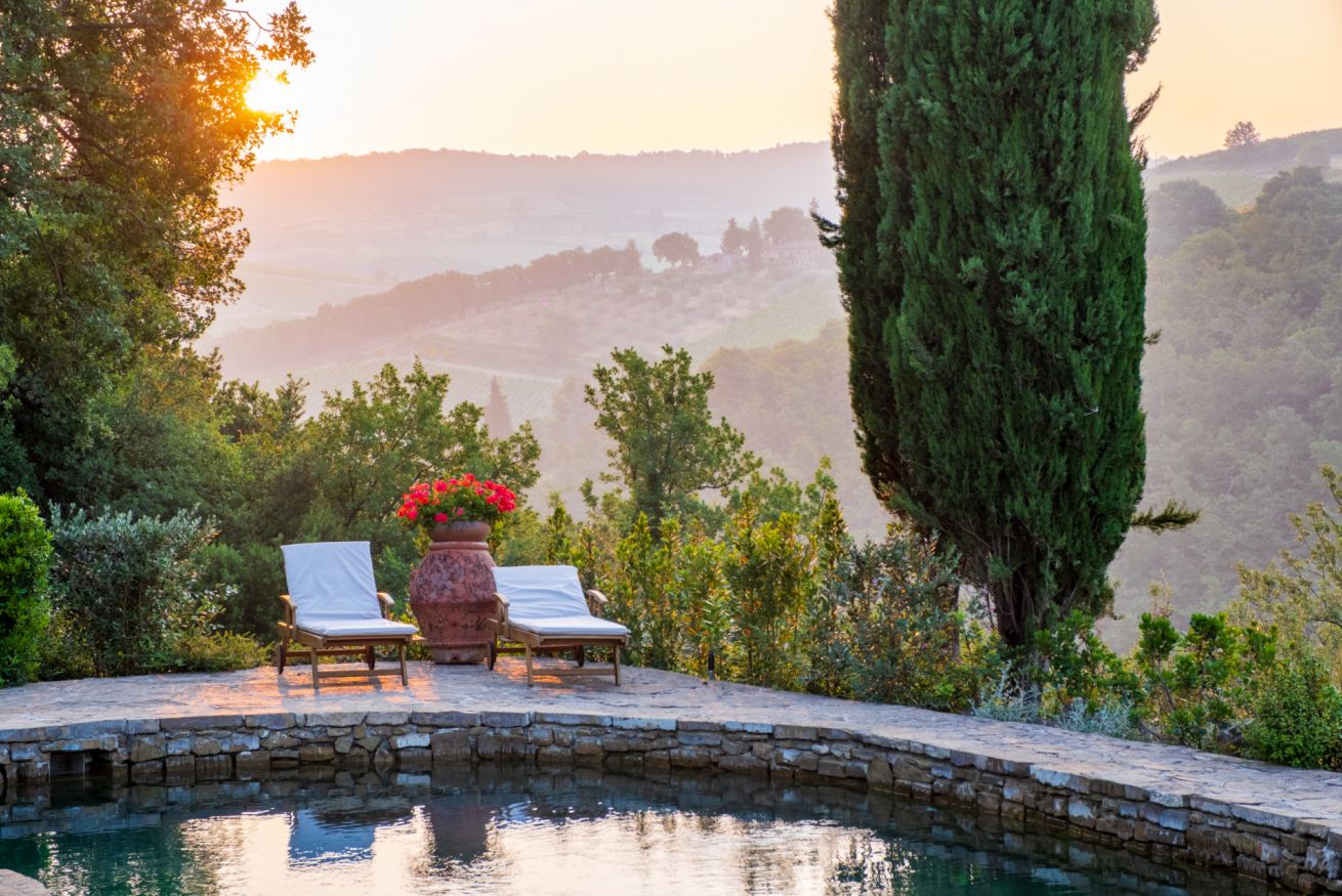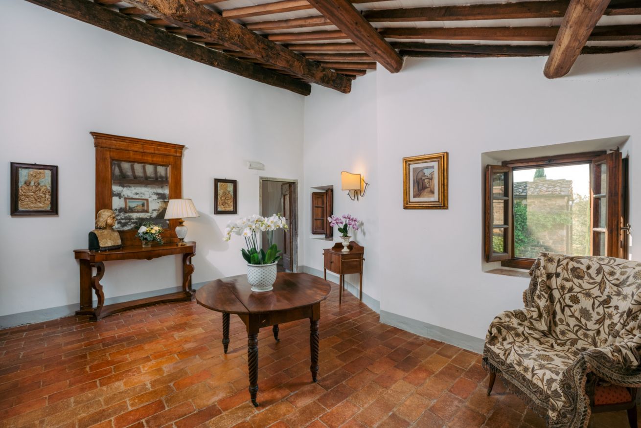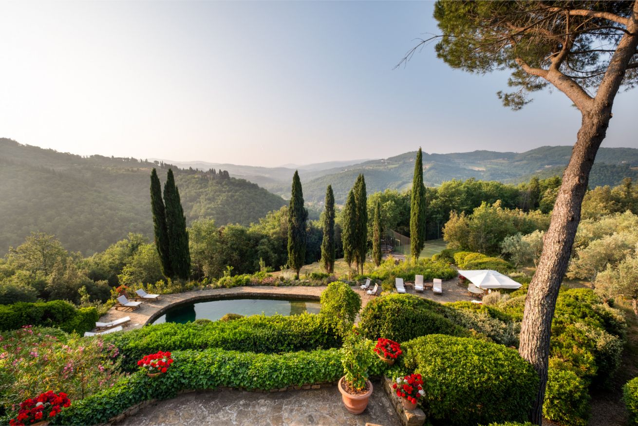 Proprietà esclusiva nel cuore del Chianti, immersa tra vigneti e uliveti con una vista mozzafiato sulla campagna toscana. Un antico casale in pietra con piscina privata e campo da tennis, circondato da ampi e curatissimi spazi verdi.