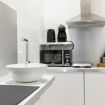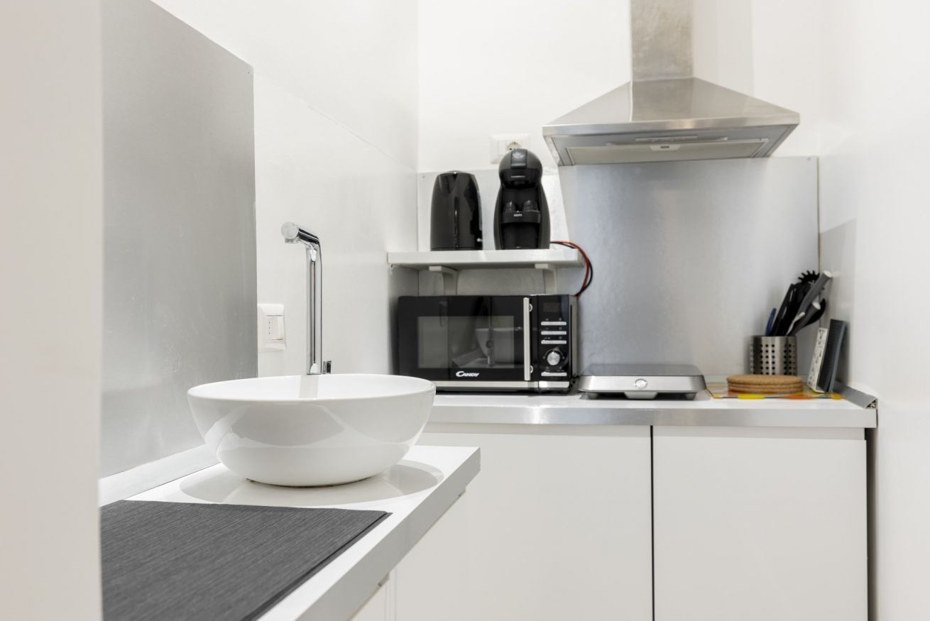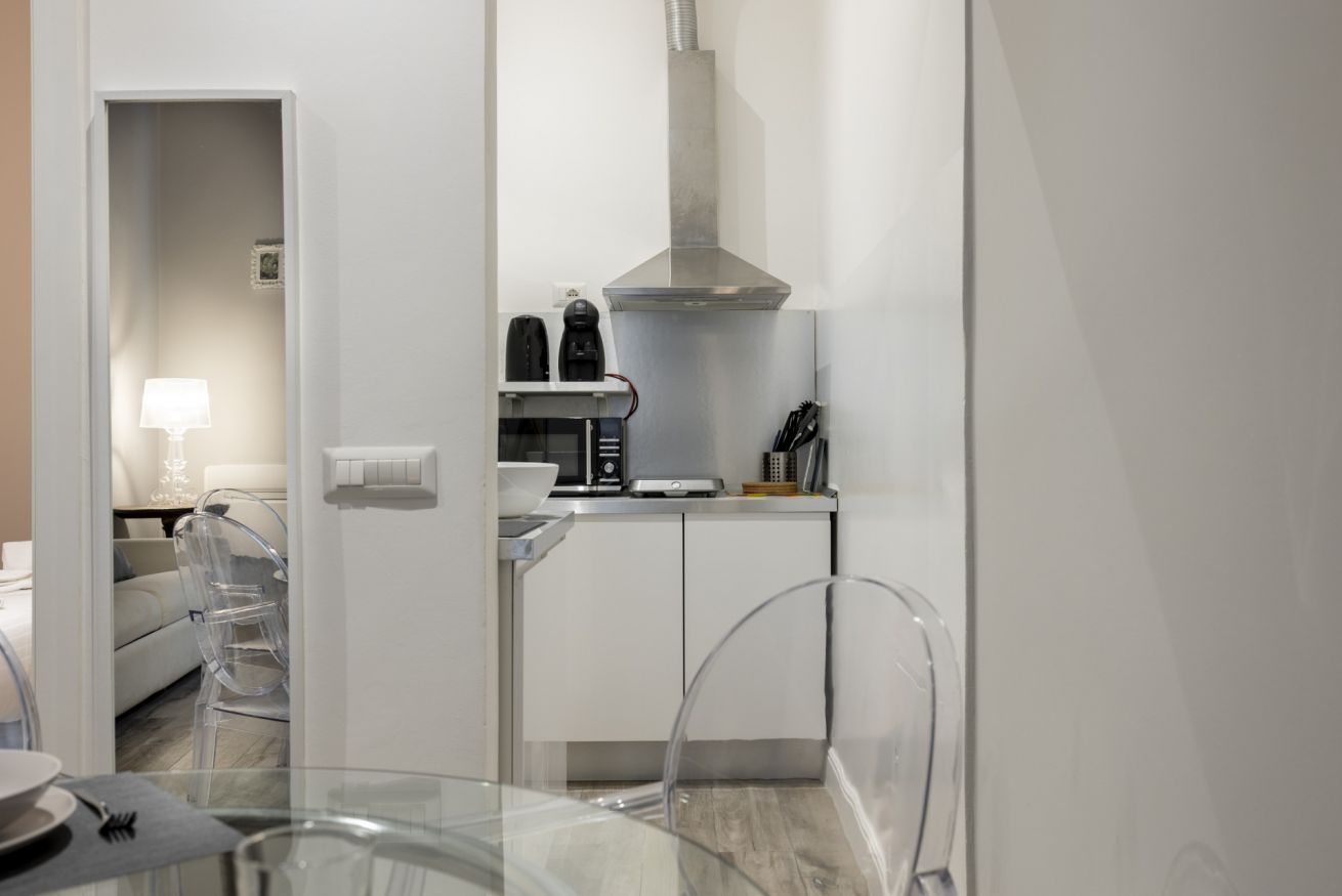 - Tavolo da pranzo e cucinino compatto, attrezzato per preparare pasti semplici
