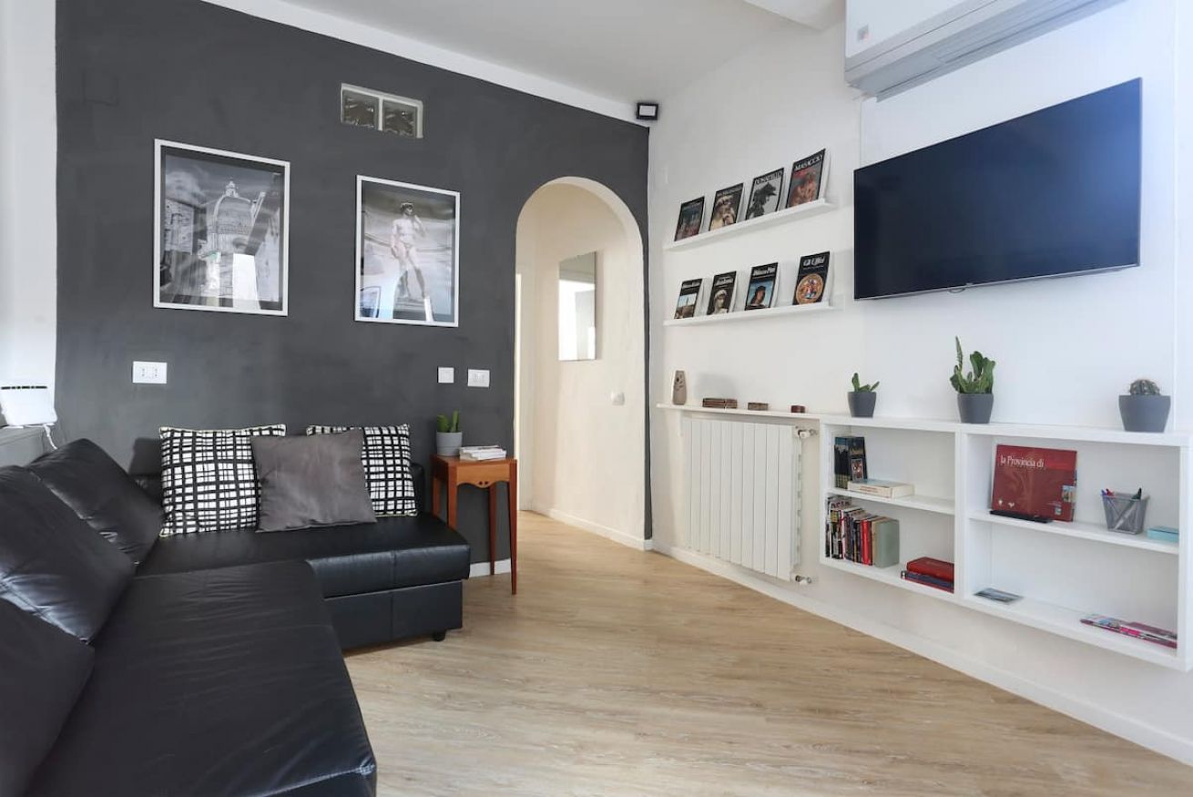 L’appartamento, di circa 40 m², si trova al secondo piano di un tipico edificio storico senza ascensore e offre un ambiente semplice, funzionale e accogliente. La camera matrimoniale dispone di un guardaroba a vista con appendiabiti, pratico e armonioso. Il soggiorno è ampio e dotato di divano letto e TV, creando uno spazio confortevole in cui rilassarsi dopo una giornata in città.