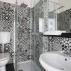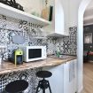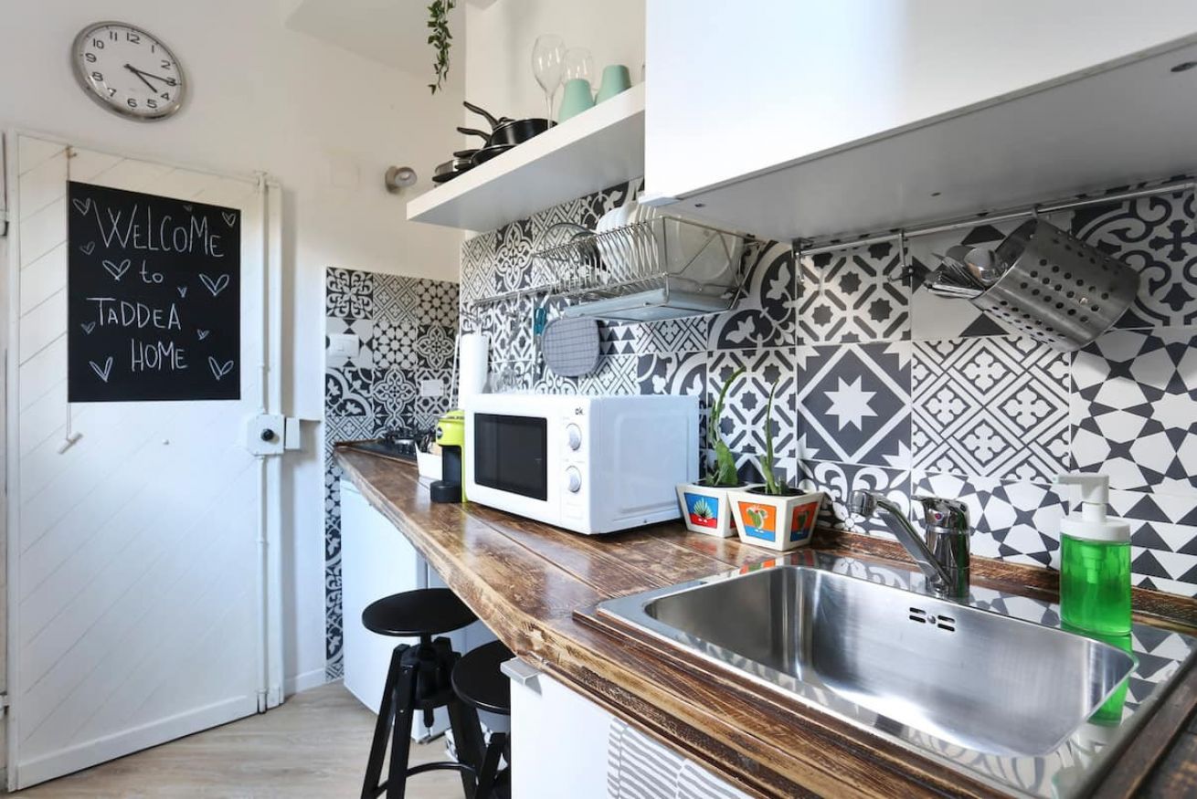 L’angolo cottura è attrezzato con utensili, frigorifero, microonde e macchina da caffè, permettendo di preparare pasti semplici in autonomia. Il bagno moderno è dotato di doccia, asciugamani, prodotti da bagno in omaggio e asciugacapelli.