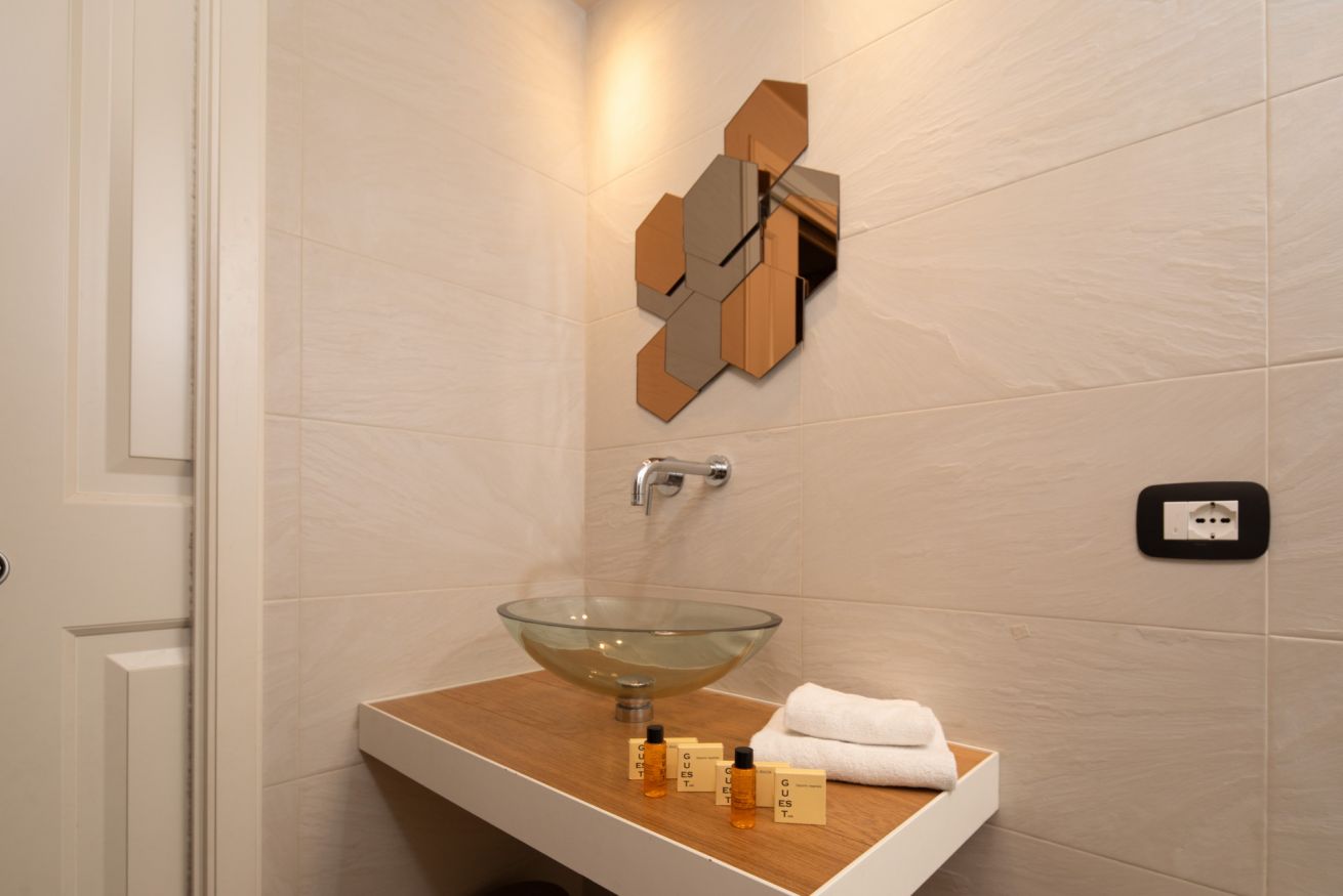 L’alloggio dispone di una luminosa zona giorno open space con cucina attrezzata, tavolo da pranzo e un piccolo salotto dove rilassarsi dopo una giornata tra musei e passeggiate. La camera da letto offre un letto matrimoniale queen-size, una TV e una spaziosa cabina armadio. Il bagno principale è moderno, con doccia a filo pavimento e bidet, mentre il secondo servizio include lavatrice e asciugatrice. L’appartamento è pensato per offrire comfort e praticità, ideale sia per brevi soggiorni che per permanenze più lunghe.