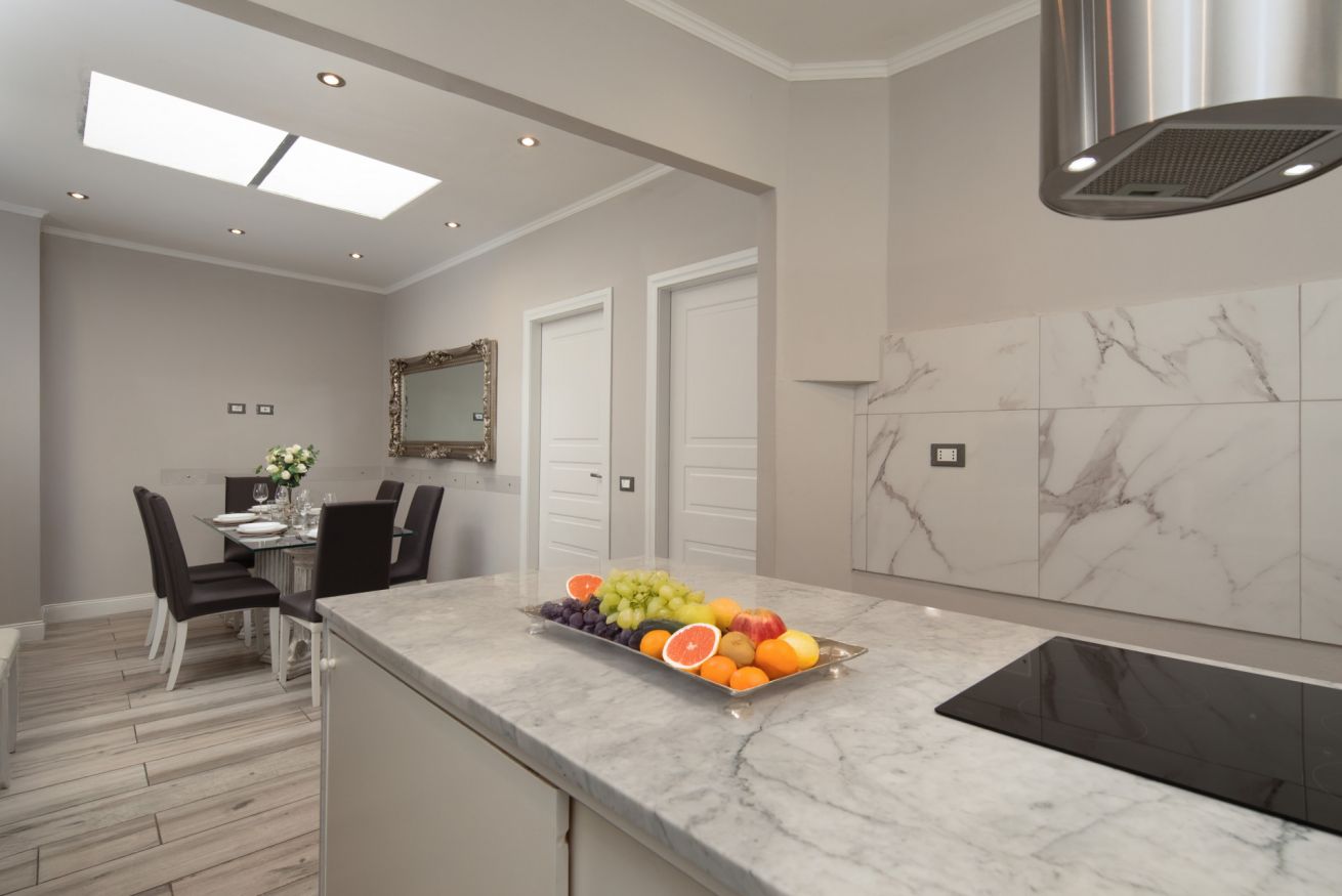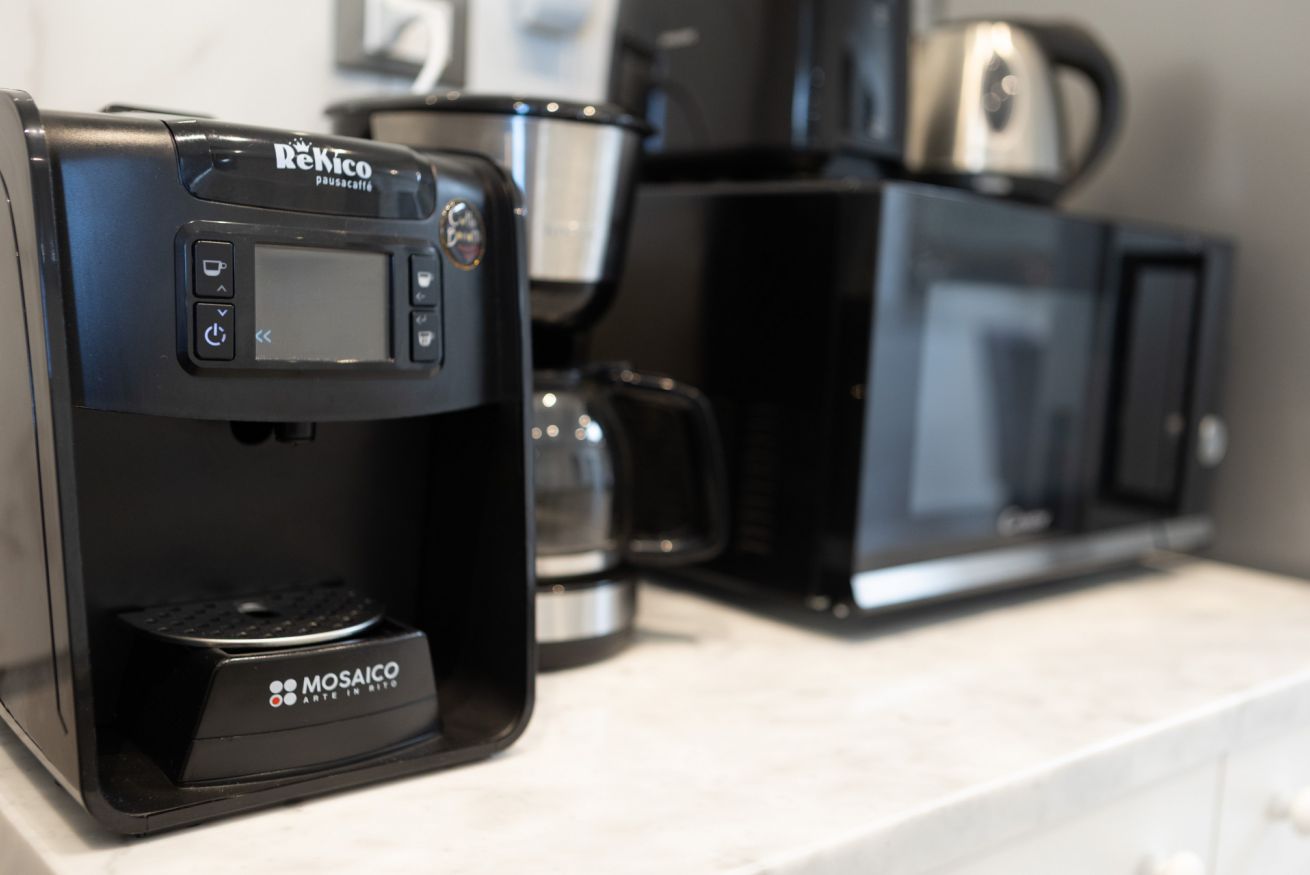 • Cucina moderna e completamente attrezzata con forno, microonde, lavastoviglie, macchina da caffè