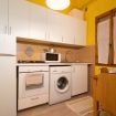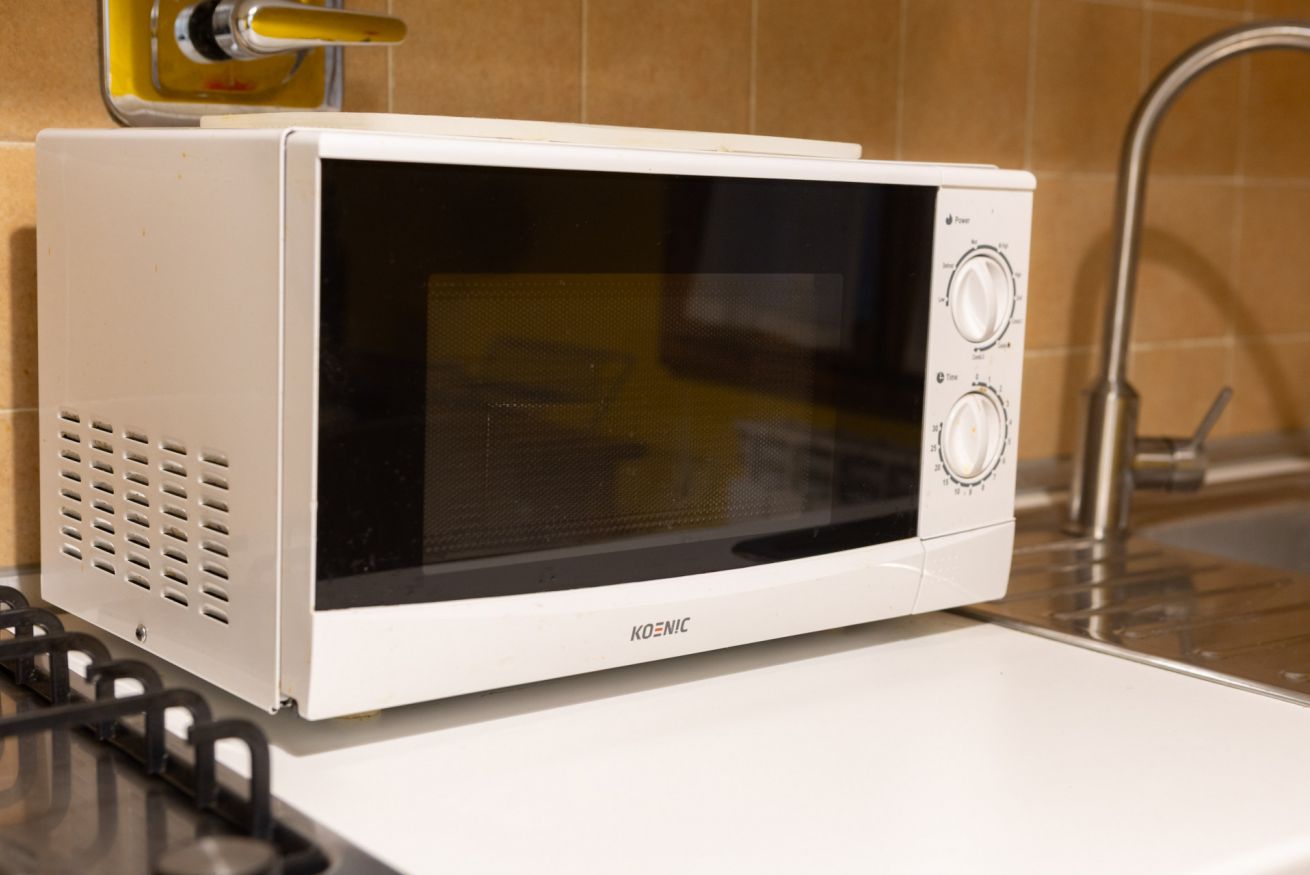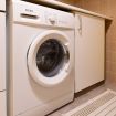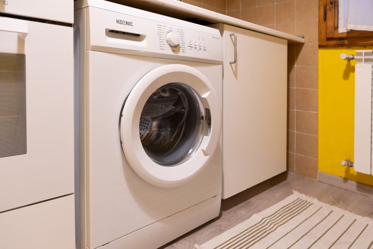 La cucina è separata e completamente attrezzata con lavatrice, frigorifero, forno, microonde, lavastoviglie, bollitore e moka. È presente un tavolo con due sedute per i pasti quotidiani.