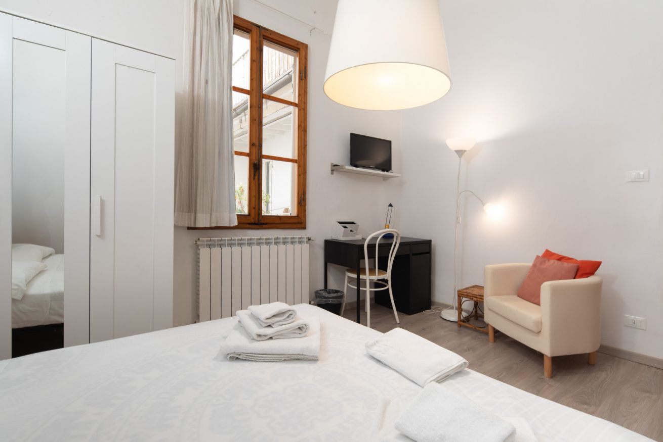 Ognissanti Central Apartment è disponibile esclusivamente per soggiorni di medio periodo ed è la soluzione ideale per chi cerca un punto d’appoggio funzionale e centralissimo a Firenze. Situato nel quartiere di Borgo Ognissanti, consente di raggiungere facilmente il centro storico e la stazione di Santa Maria Novella. L’appartamento, di circa 60 mq, si trova al terzo piano di un edificio storico e presenta uno stile classico ed essenziale, pensato per soggiorni prolungati. La camera da letto è dotata di letto matrimoniale.