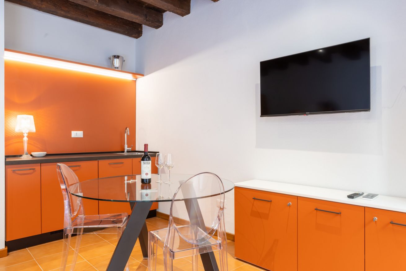 Questo appartamento accogliente e ben curato si trova al primo piano di un edificio storico fiorentino (senza ascensore), proprio di fronte alla famosa Chiesa di Orsanmichele. Composto da un'unica stanza, l'ambiente è ideale per un soggiorno intimo e confortevole. Al suo interno troverete un letto matrimoniale, TV e un tavolo da pranzo, insieme a una cucina compatta ma ben attrezzata con microonde, macchina del caffè, frigo e bollitore.