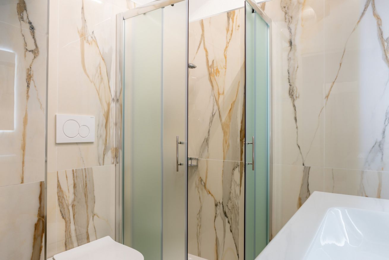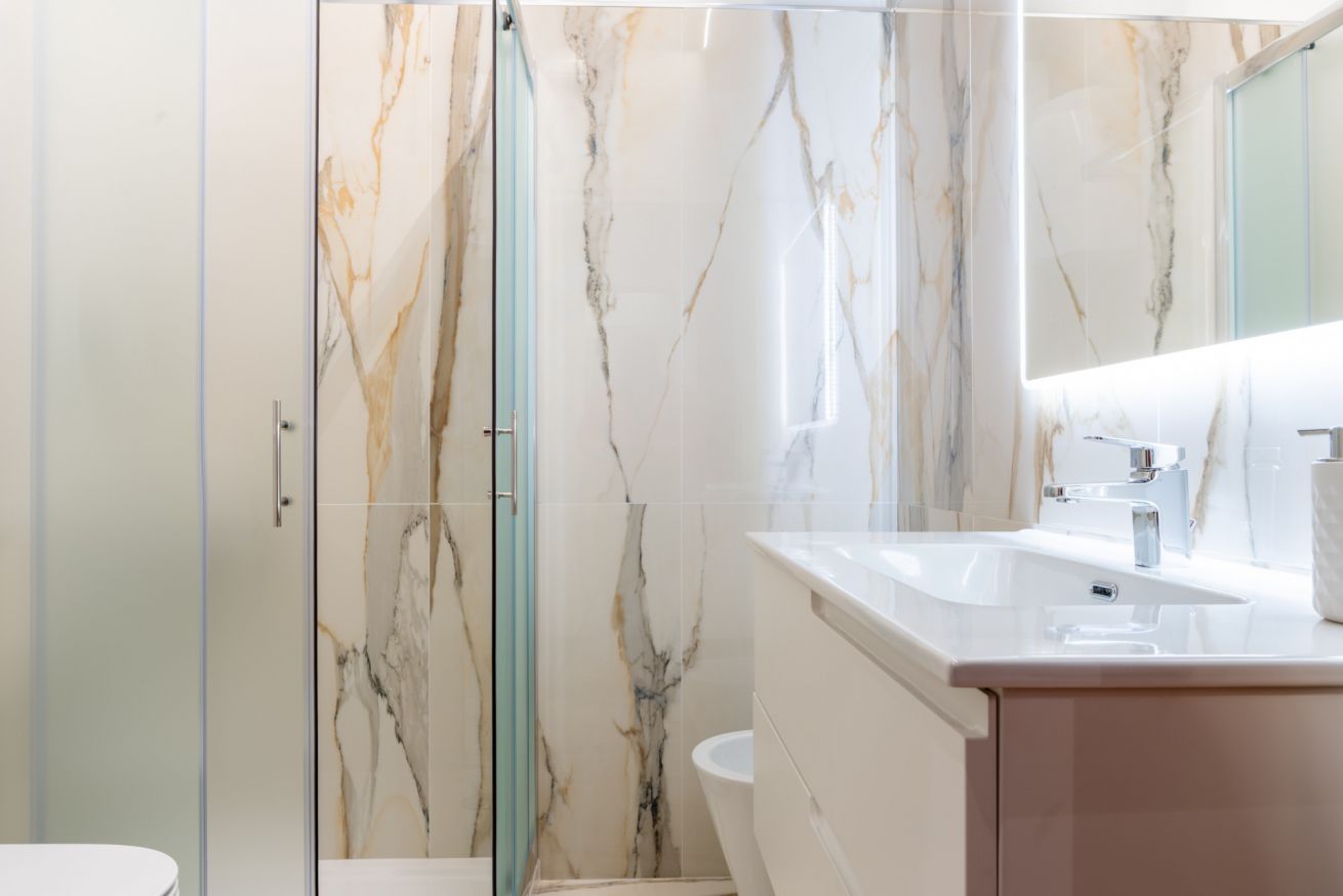 Il bagno moderno, elegante e funzionale, è dotato di una comoda doccia. L'appartamento è inoltre equipaggiato con aria condizionata e Wi-Fi gratuito, per assicurare il massimo del comfort durante il soggiorno.