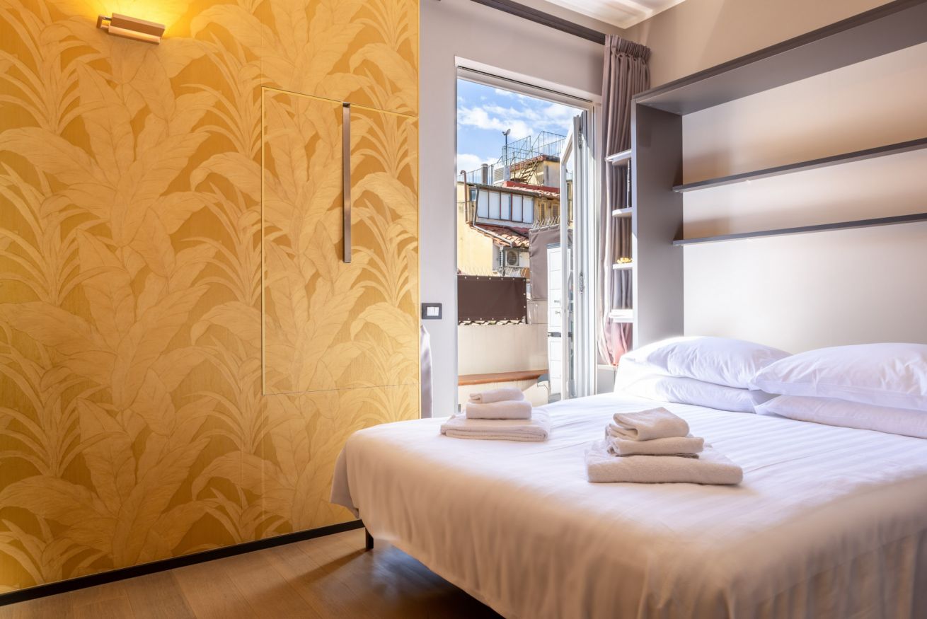 Questo elegante loft di 25 m² è ideale per due ospiti e si concentra su comfort, privacy e stile. Pur essendo compatto, rappresenta un rifugio tranquillo nel centro di Firenze.