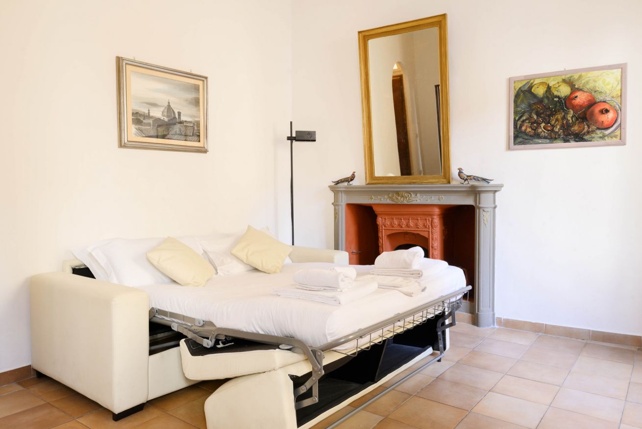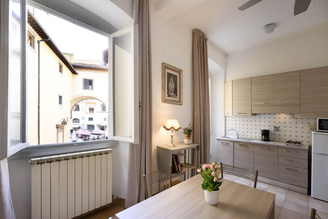 Romantic Ponte Vecchio è un appartamento luminoso e accogliente nel cuore dell’Oltrarno. A pochi passi da Ponte Vecchio, Palazzo Pitti e dalla Galleria degli Uffizi, questo appartamento recentemente ristrutturato offre un’atmosfera calda e una splendida vista su una delle piazzette più suggestive di Firenze, proprio di fronte al celebre Corridoio Vasariano. L’appartamento di circa 45 mq, situato al primo piano di un palazzo ottocentesco (senza ascensore), comprende una camera matrimoniale ampia e luminosa, un caratteristico bagno finestrato, un salottino con camino perfetto per rilassarsi e una cucina moderna e attrezzata che permette di preparare ogni pasto con facilità. Completano la proprietà riscaldamento per l’inverno, ventilatore a soffitto per l’estate e una connessione Wi-Fi veloce e gratuita. L’appartamento è ideale per coppie, famiglie o piccoli gruppi di amici che vogliono vivere Firenze in pieno comfort e con una posizione centrale.