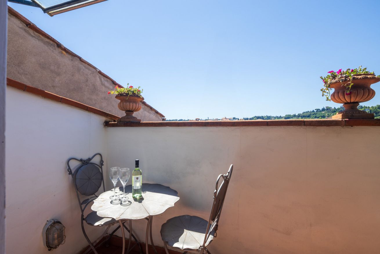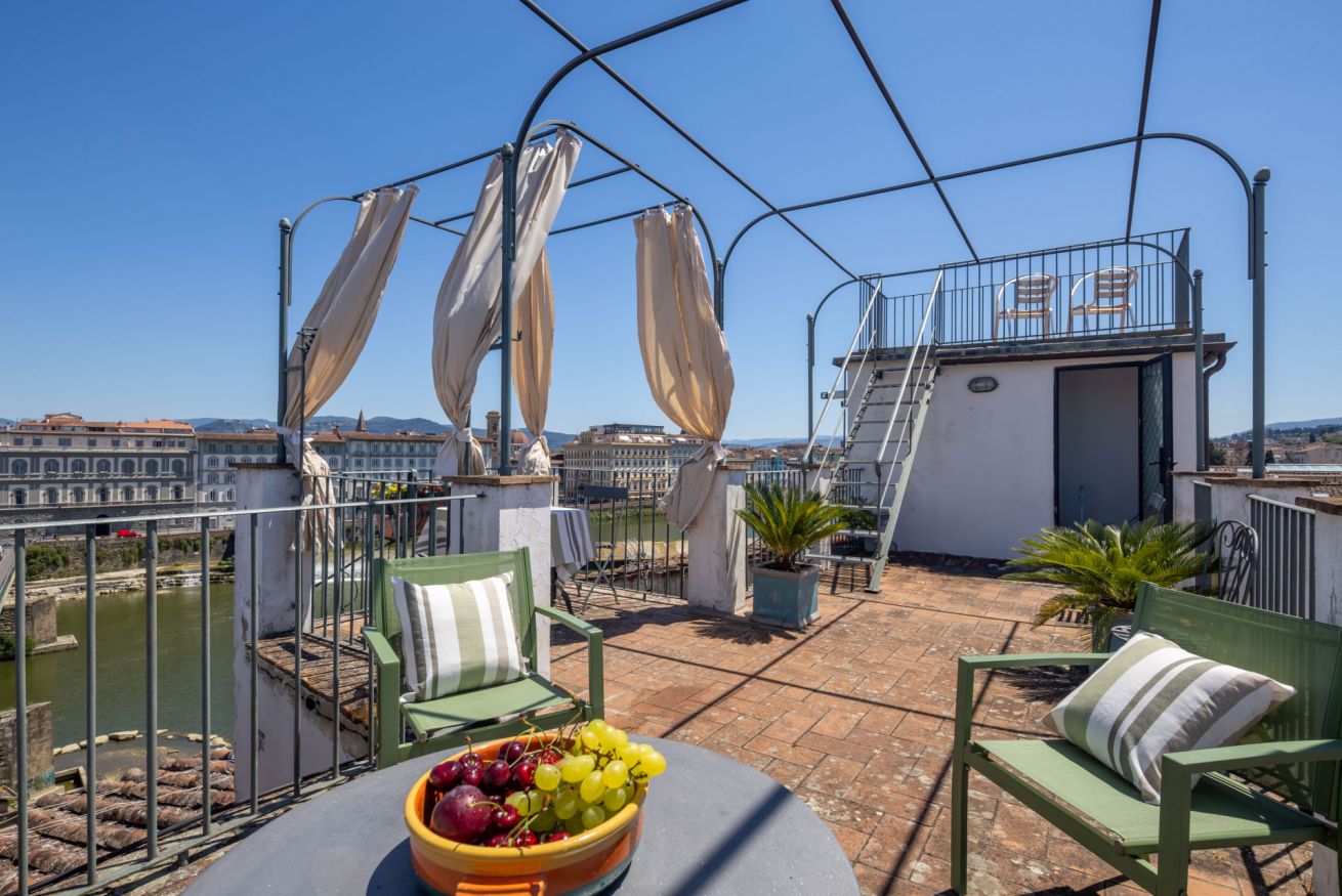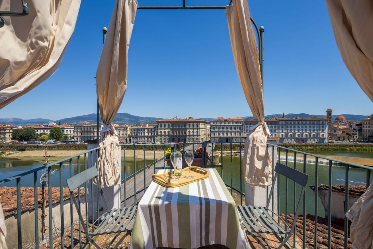 L’appartamento offre due terrazze panoramiche: una piccola “a tasca”, perfetta per colazioni o aperitivi, e una terrazza principale di 20 mq con vista sull’Arno, ideale per rilassarsi. Tra i comfort: Wi-Fi gratuito, aria condizionata, riscaldamento e biancheria inclusa.