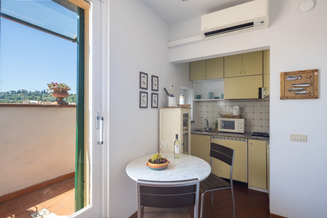 Questo accogliente appartamento, situato al quarto piano di un tipico edificio fiorentino (senza ascensore), combina arredi antichi e moderni. Dispone di una camera doppia accogliente, un bagno moderno con doccia e un angolo cottura ben attrezzato.