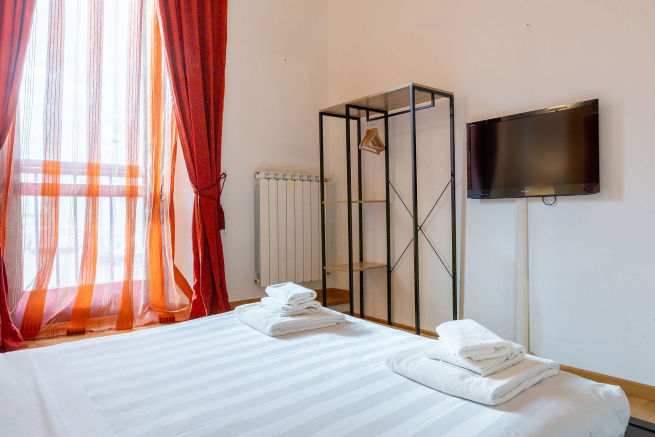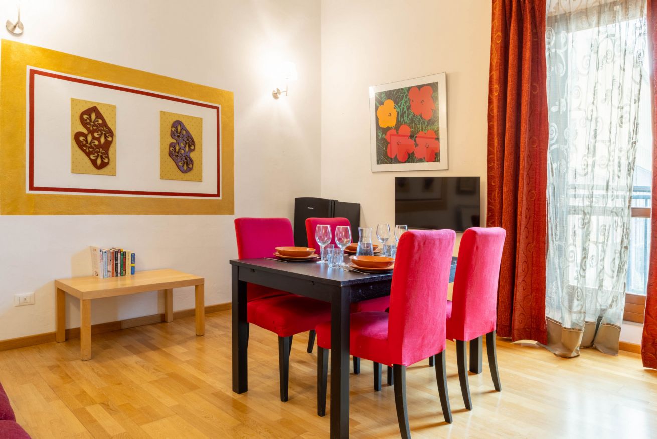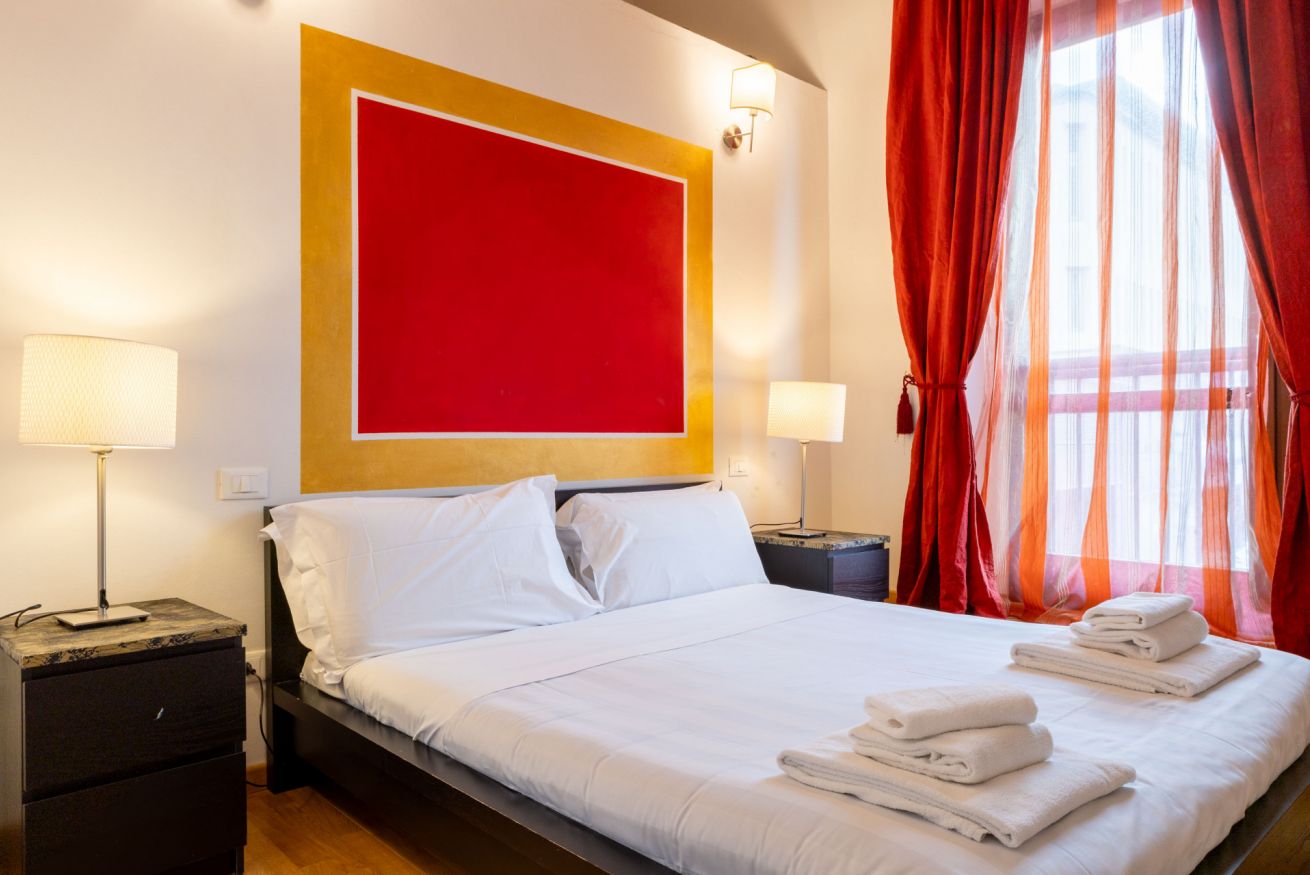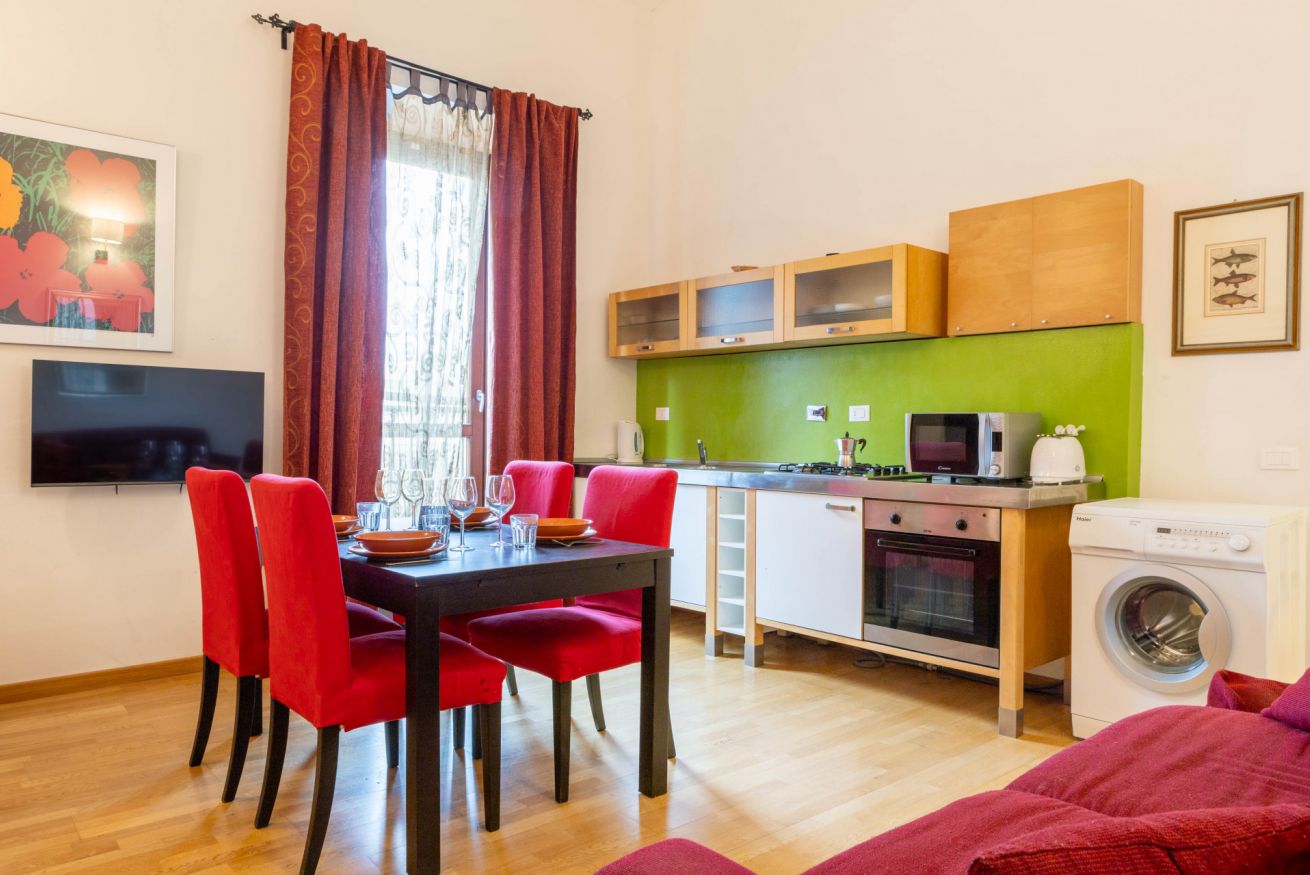 L’appartamento, al primo piano di un caratteristico edificio storico (senza ascensore), offre spazi ampi e funzionali. Dispone di una camera con letto matrimoniale, un bagno con doccia, un salotto con divano letto e una cucina attrezzata per preparare pasti in autonomia.