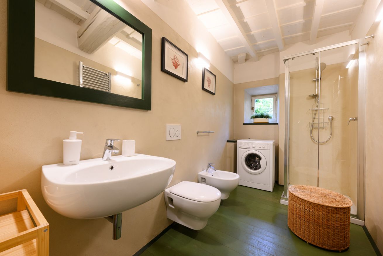 Completano la proprietà due bagni moderni, entrambi con doccia, di cui uno dotato anche di lavatrice per la massima comodità durante il soggiorno.