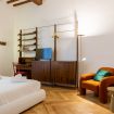 La cucina, attrezzata con piano a induzione, forno e lavastoviglie, permette di vivere la casa come veri fiorentini. Il soggiorno, con soffitti a volta e Smart TV, è pensato per momenti conviviali. Le finestre alla francese si aprono sui tetti della città, offrendo scorci suggestivi al mattino e al tramonto. L’atmosfera unisce arredi toscani artigianali e opere d’arte scelte con gusto.