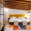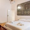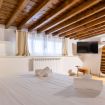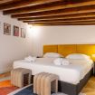 L’appartamento si estende su 140 m² ed è situato al secondo piano di un palazzo del Cinquecento (senza ascensore). Gli spazi sono ampi e ben distribuiti: al piano principale si trovano la zona giorno con sala da pranzo e due camere matrimoniali tranquille; al livello superiore una terza camera con due letti singoli separabili, perfetta per amici o fratelli. Due bagni moderni completano la zona notte: uno con doccia en-suite e uno con vasca e doccia.