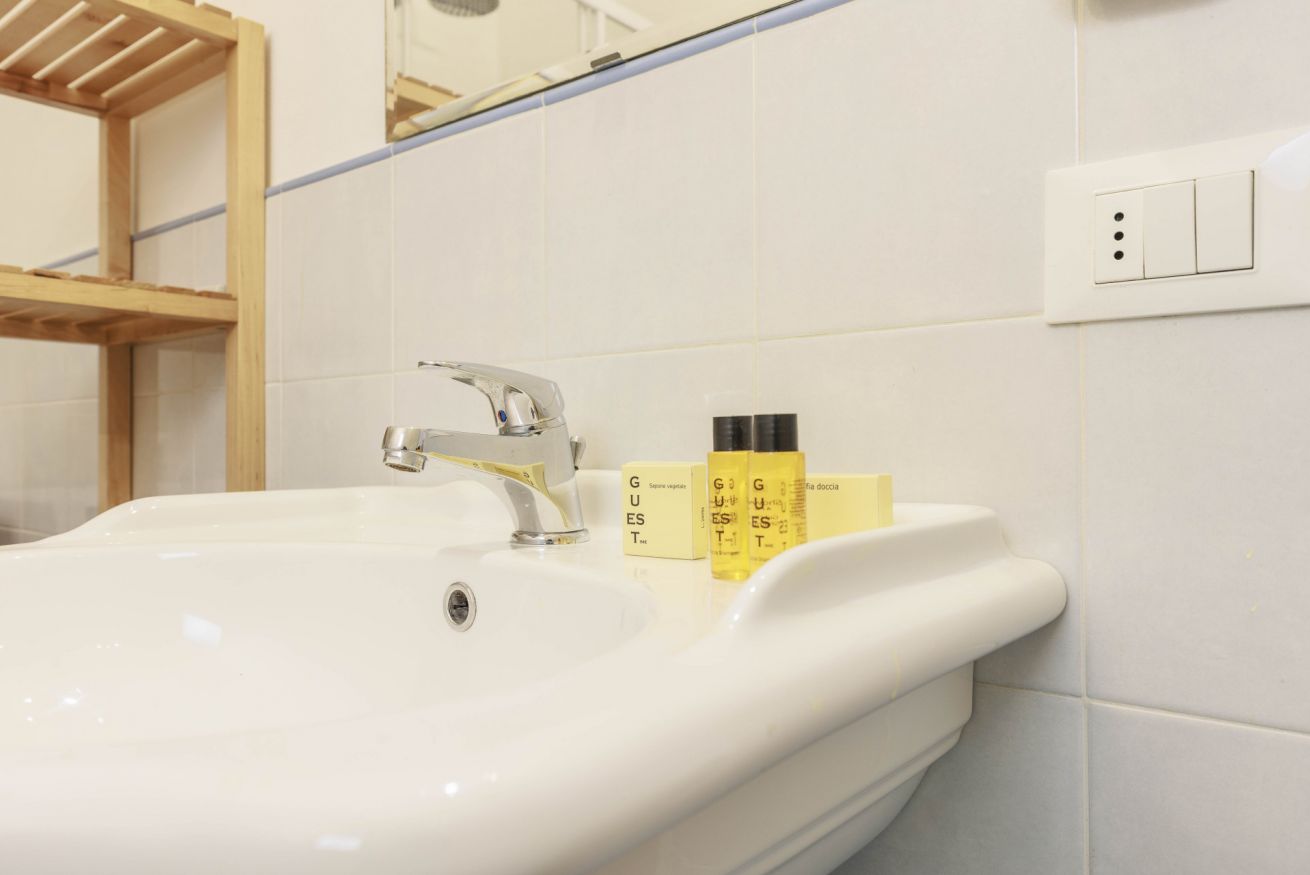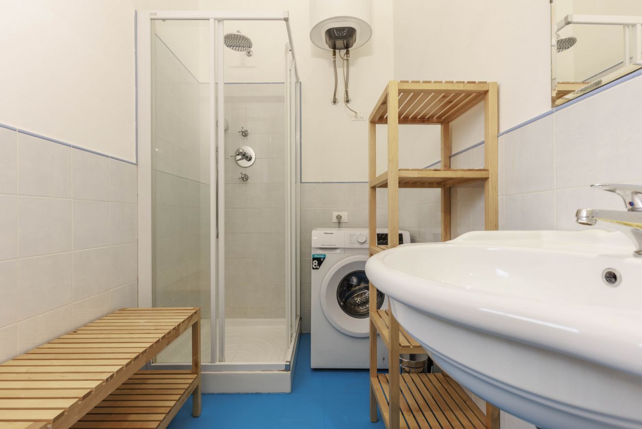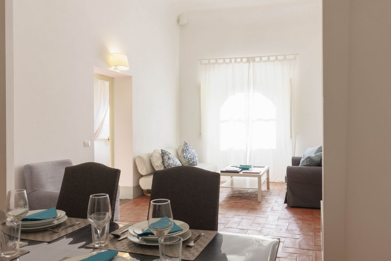 L’appartamento si estende su una superficie di 100 m² e può ospitare fino a quattro persone. Dispone di una camera da letto molto spaziosa con un letto king-size che può essere preparato anche come due letti singoli, oltre a un grande armadio e una scrivania adatta allo smart working. Il bagno privato è dotato di doccia e lavatrice. L’ampia zona living open space offre due divani, un angolo pranzo e una TV, creando uno spazio accogliente in cui rilassarsi dopo una giornata trascorsa alla scoperta di Firenze. L’angolo cottura compatto è attrezzato con piano cottura, forno, lavastoviglie, tostapane, bollitore e macchina da caffè, perfetto per preparare pasti semplici. La struttura dispone di aria condizionata, Wi-Fi e comfort essenziali; è inoltre possibile richiedere una culla per bambini.