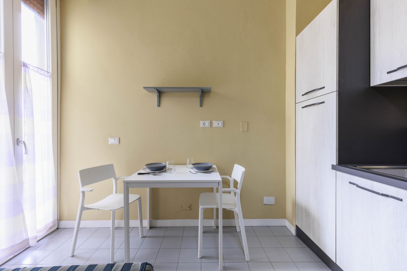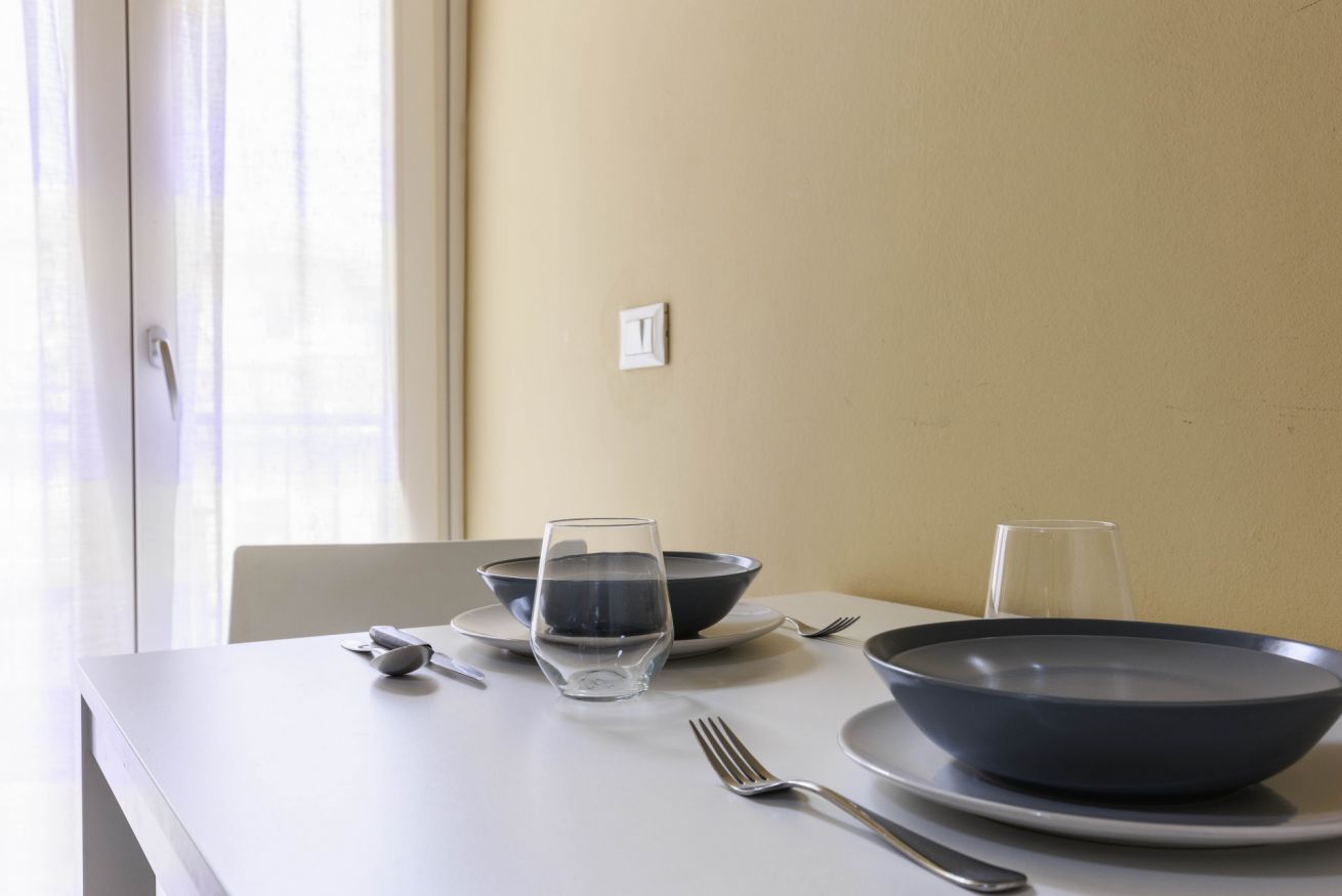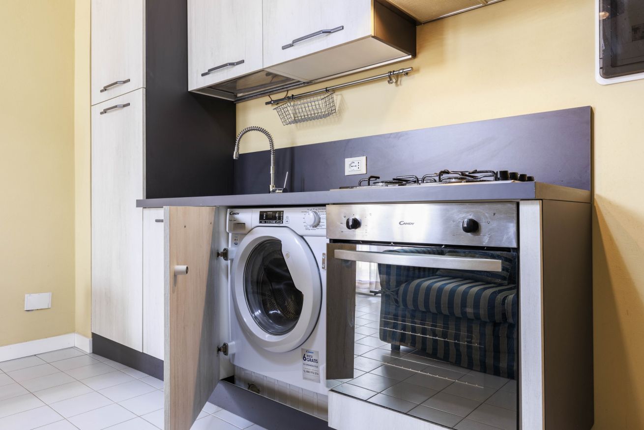 L’appartamento si trova al terzo piano di un palazzo dotato di ascensore. Offre una camera matrimoniale accogliente, un bagno moderno con doccia e una cucina pratica e funzionale, attrezzata con gli utensili essenziali per preparare pasti semplici in autonomia. È inoltre presente una lavatrice, ideale per chi soggiorna più a lungo.