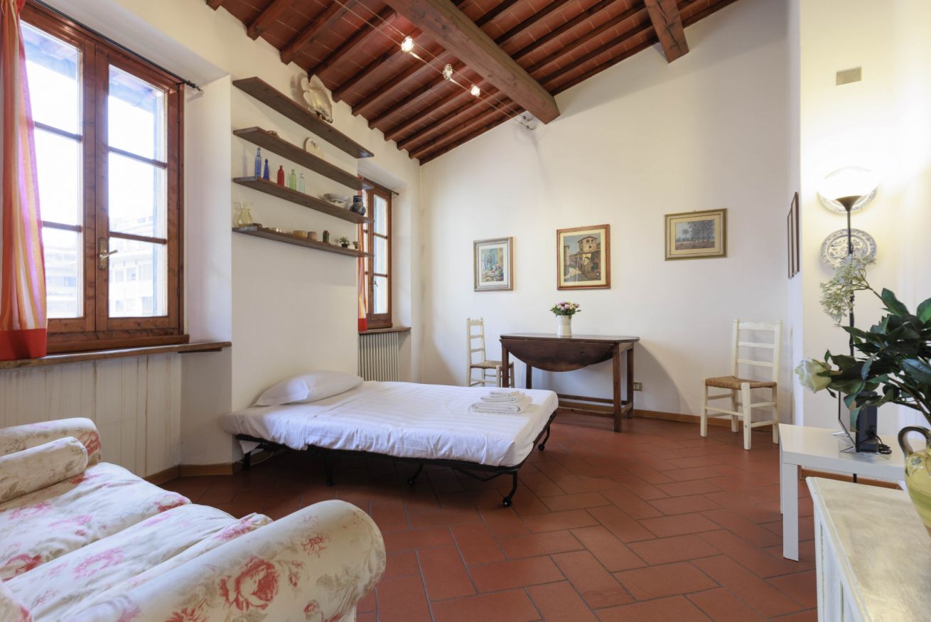 Dotato di riscaldamento, aria condizionata e Wi-Fi, il loft garantisce un soggiorno confortevole in ogni stagione. Può ospitare fino a tre persone ed è la scelta ideale per coppie, viaggiatori solitari o piccoli gruppi di amici che desiderano vivere Firenze in un contesto accogliente e ben collegato.