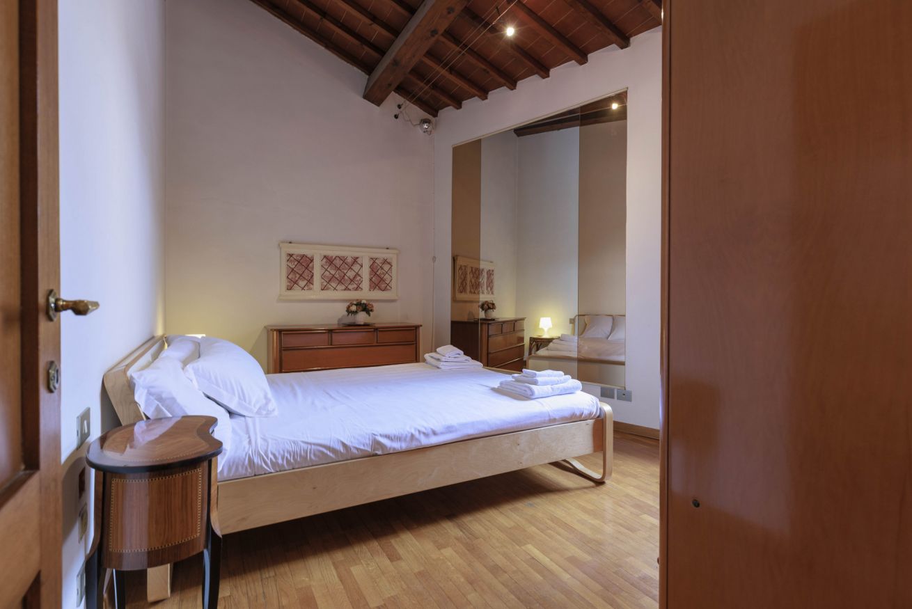 Situato al terzo piano di un elegante palazzo con ascensore, il loft offre ambienti luminosi e funzionali. La spaziosa camera da letto dispone di un ampio armadio, mentre il bagno è dotato di vasca con doccia, perfetta per rilassarsi dopo una giornata di visite. Il soggiorno accogliente include un pratico divano letto, ideale per un ospite aggiuntivo, e la cucina ben attrezzata permette di preparare con facilità colazioni, spuntini o pasti veloci.