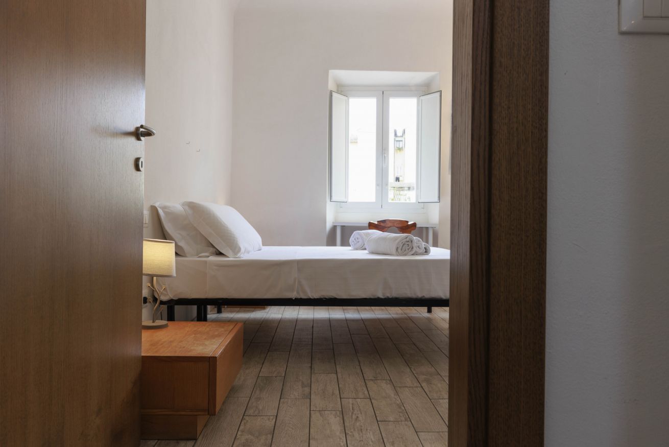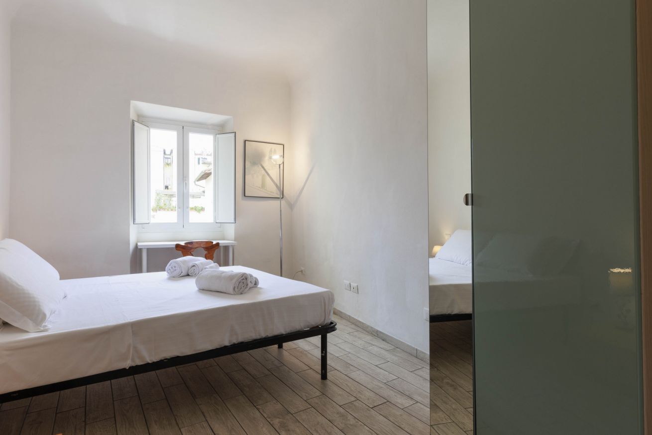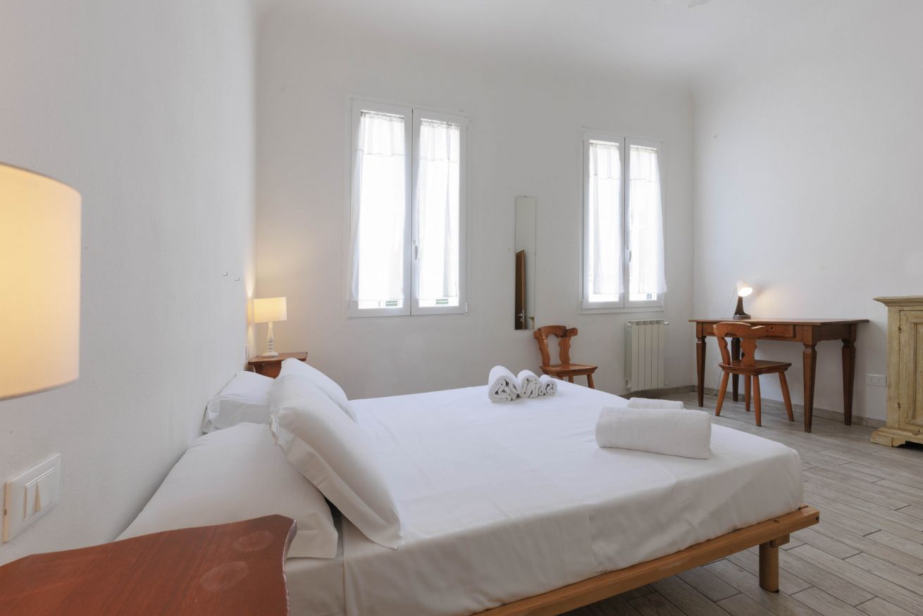 Situato al secondo piano di un tipico edificio fiorentino senza ascensore, l’appartamento è essenziale, confortevole e dotato dei comfort di base necessari per un soggiorno piacevole. Può ospitare fino a cinque persone e dispone di due luminose camere doppie, ciascuna con due letti singoli unibili in un matrimoniale king-size, oltre a scrivania e armadio.