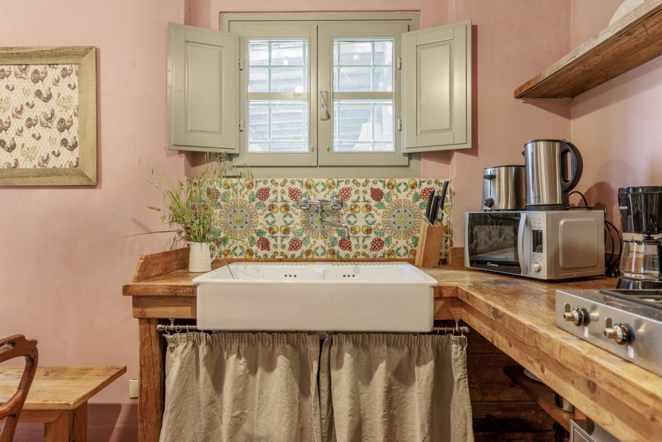 Qui il fascino del passato incontra l’eleganza contemporanea, in un’atmosfera di quiete e bellezza sospesa tra campagna e città. Dalla terrazza privata, lo sguardo si perde sul profilo di Firenze, che al tramonto si accende di luce dorata.