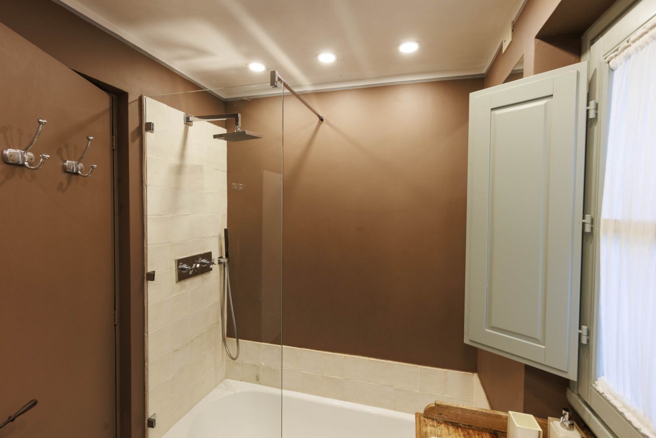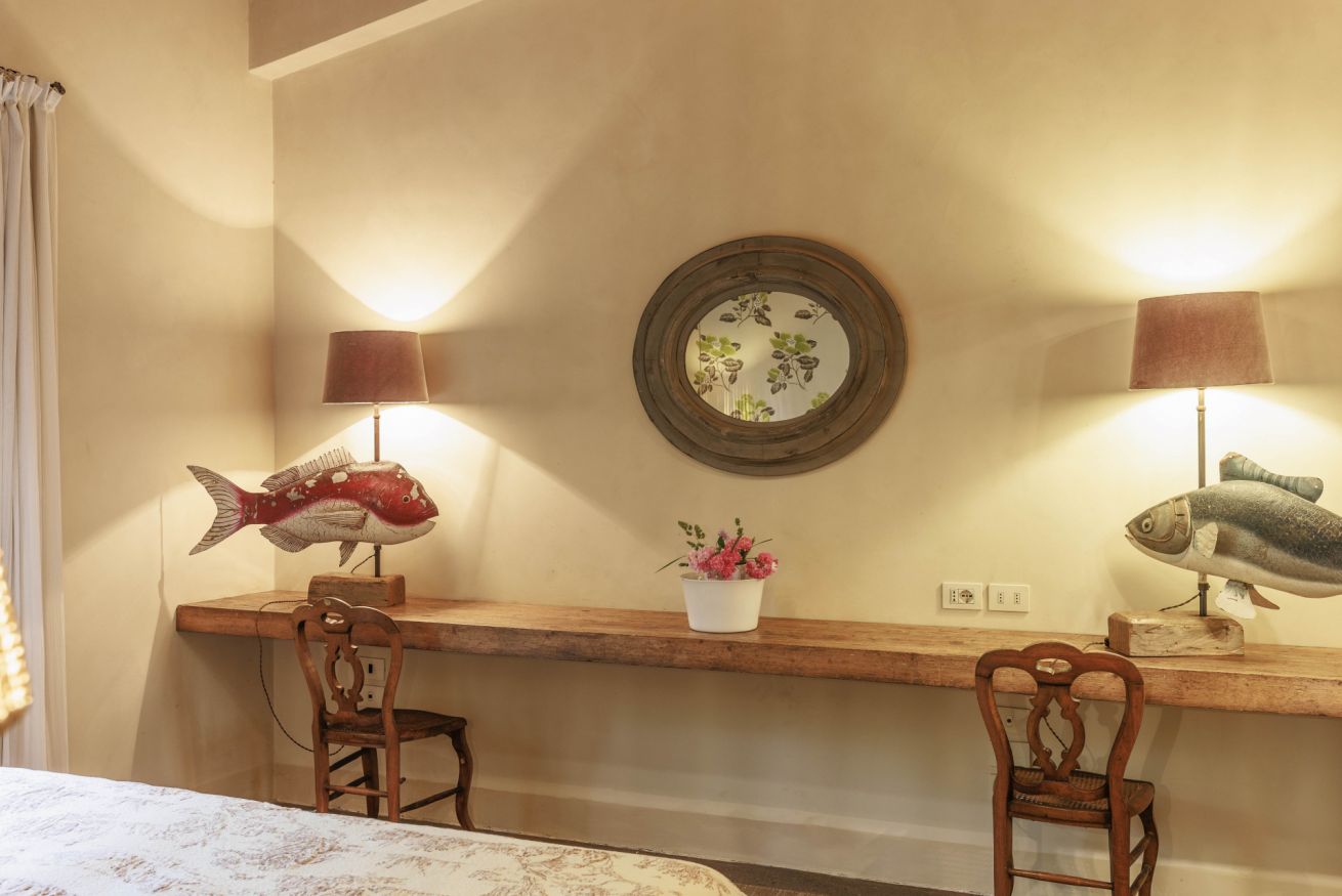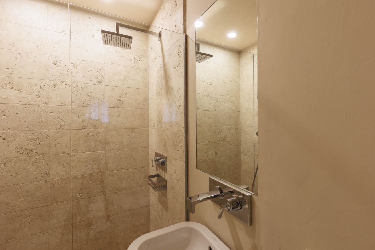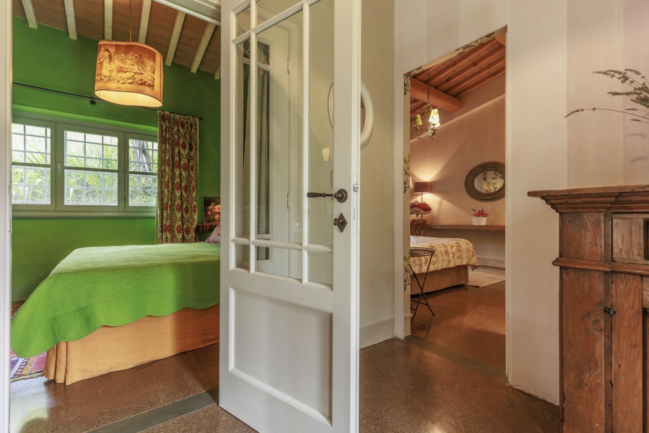 L’appartamento, di circa 90 m² tutti su un unico livello, unisce materiali autentici e comfort moderni in uno stile toscano raffinato e accogliente. Dispone di due eleganti camere matrimoniali, entrambe con bagno privato en suite: una con vasca/doccia e cabina armadio, l’altra con doccia moderna e guardaroba.
