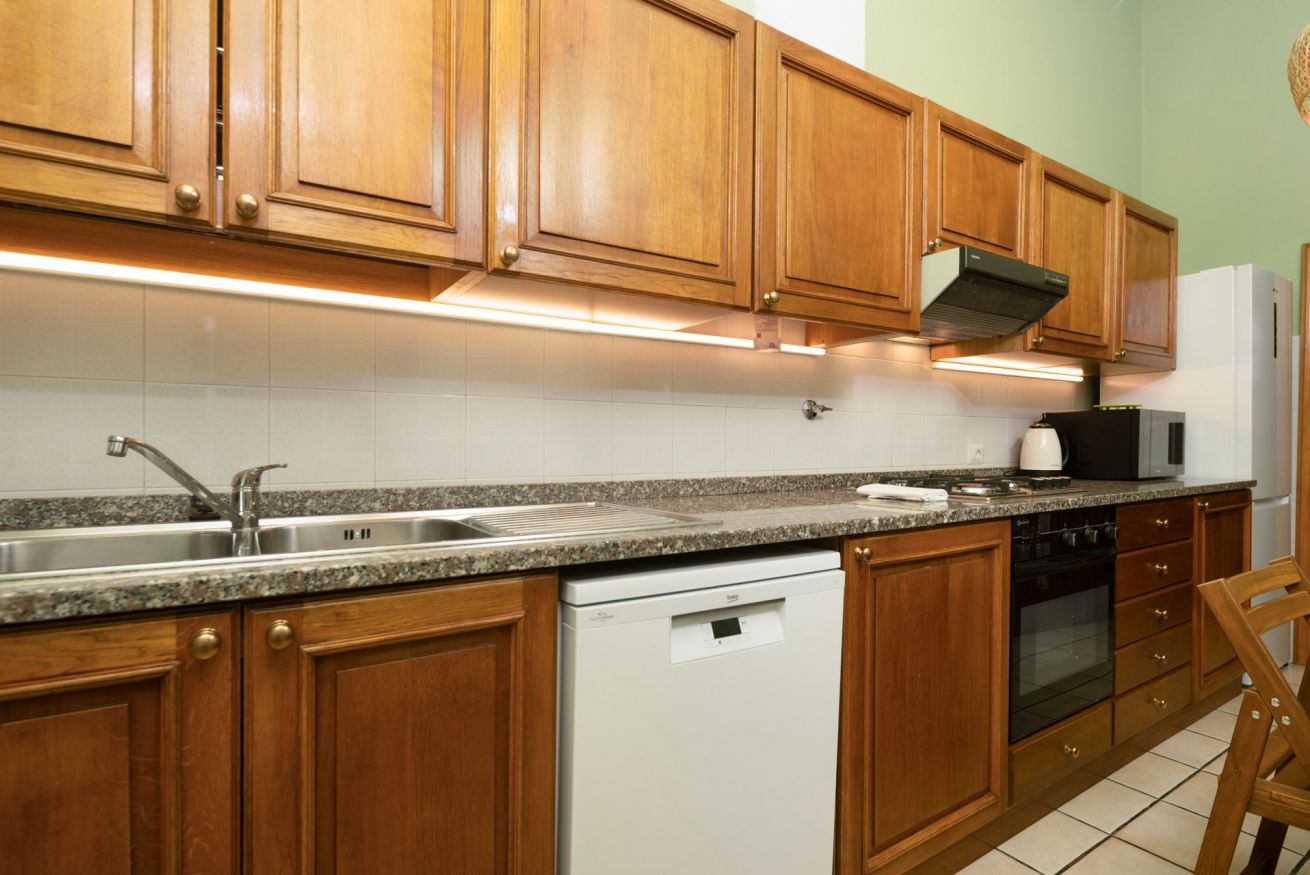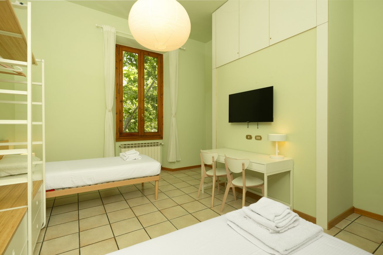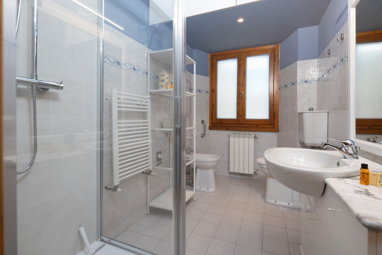 Tre camere da letto con letti singoli unibili in matrimoniale, ciascuna dotata di scrivania, armadio e Smart TV. Due bagni con doccia, uno con bidet e l’altro con lavatrice. Cucina attrezzata con forno, piano cottura, microonde, lavastoviglie, bollitore e moka. Biancheria e asciugamani inclusi.