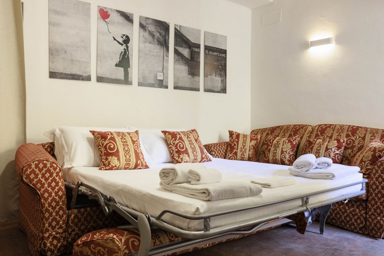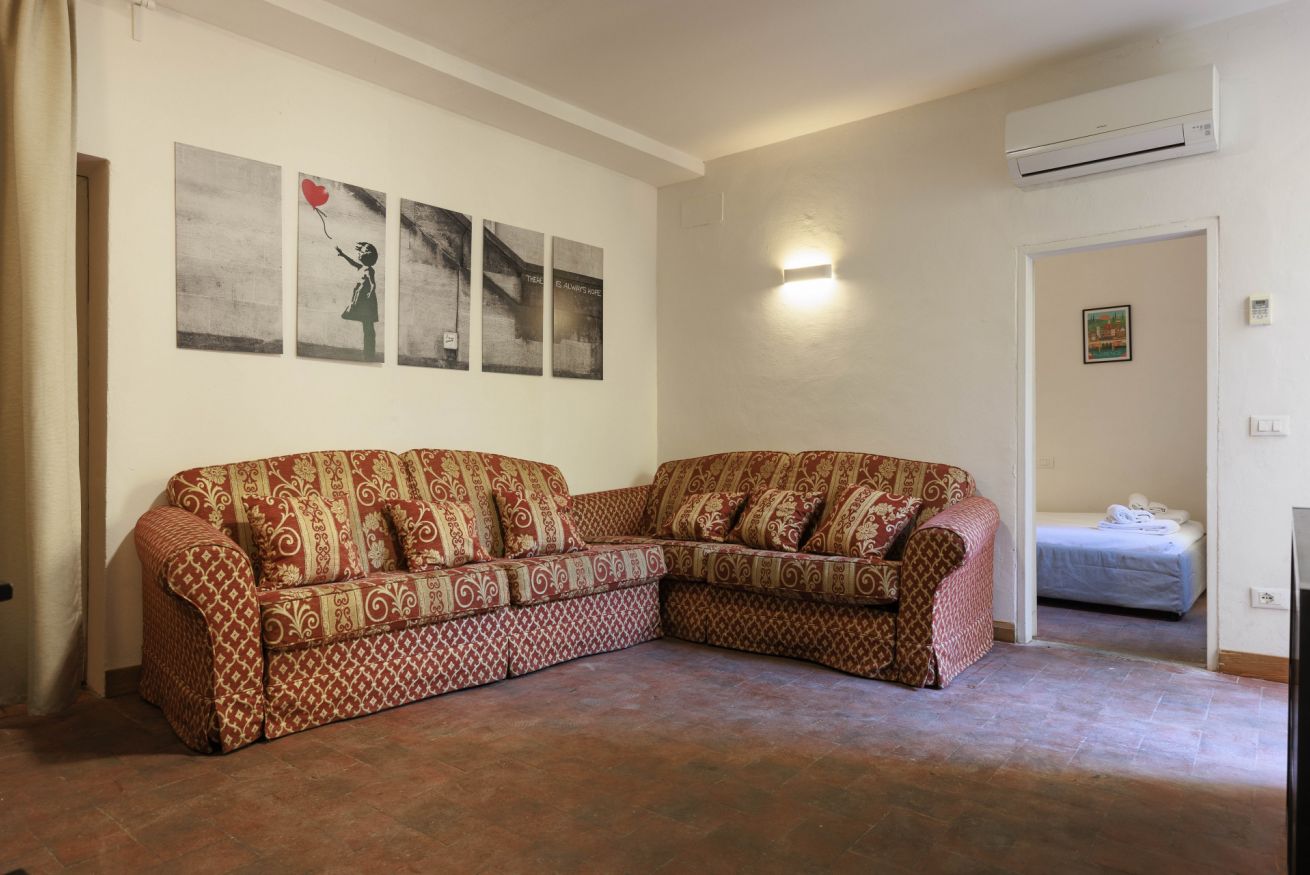 Set on the ground floor of a traditional Florentine building, the apartment is both spacious and functional. It features two double bedrooms, a living room with a sofa bed, two bathrooms, and a well-equipped kitchen where you can easily prepare your own meals.