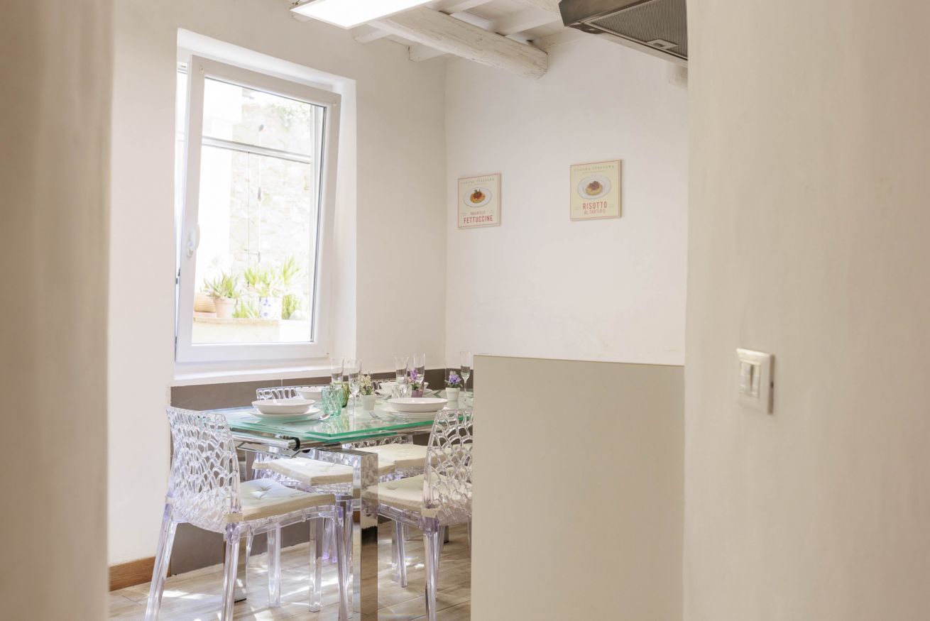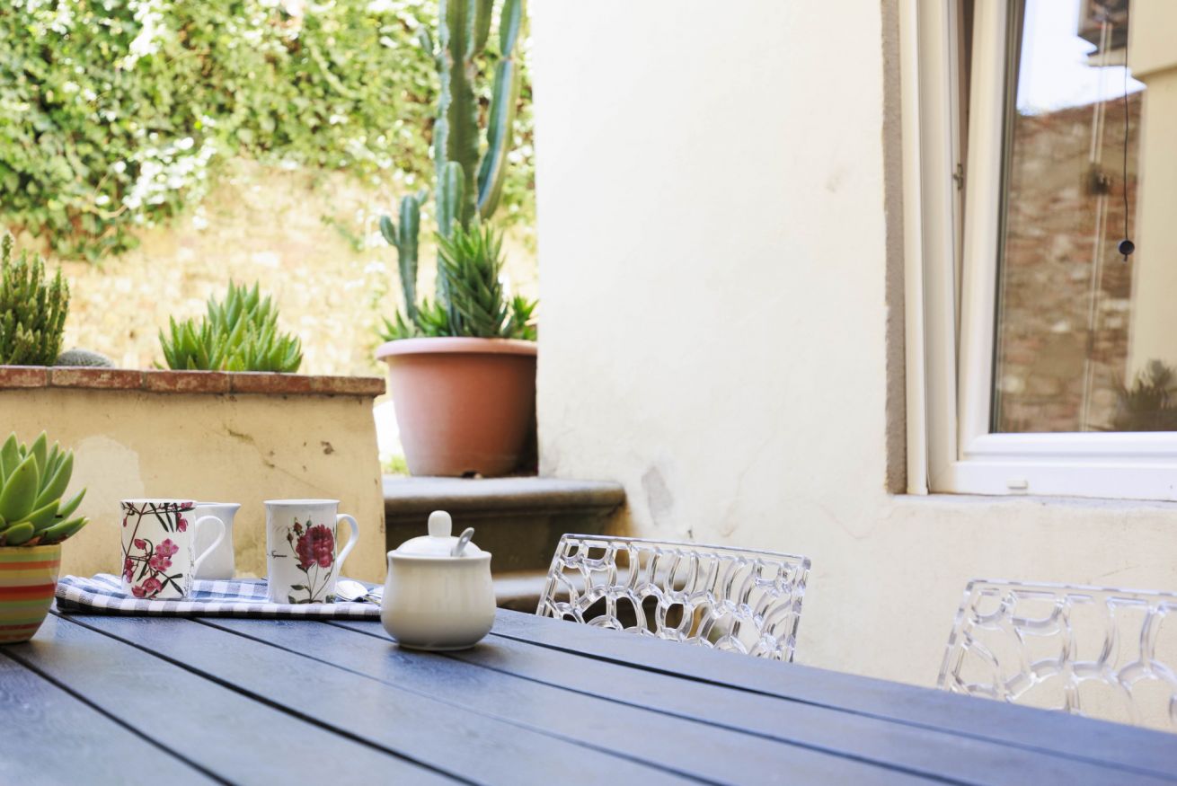 The small private terrace overlooking the inner courtyard is the perfect spot to enjoy breakfast outdoors or unwind with an aperitivo after a day of sightseeing.