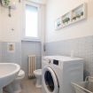 Il bagno, finestrato e funzionale, è completo di doccia e lavatrice – ideale anche per soggiorni più lunghi.
