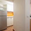 La cucina compatta è completamente attrezzata con piano cottura a induzione, frigorifero, freezer, microonde, bollitore e tutto il necessario per preparare i tuoi piatti preferiti.